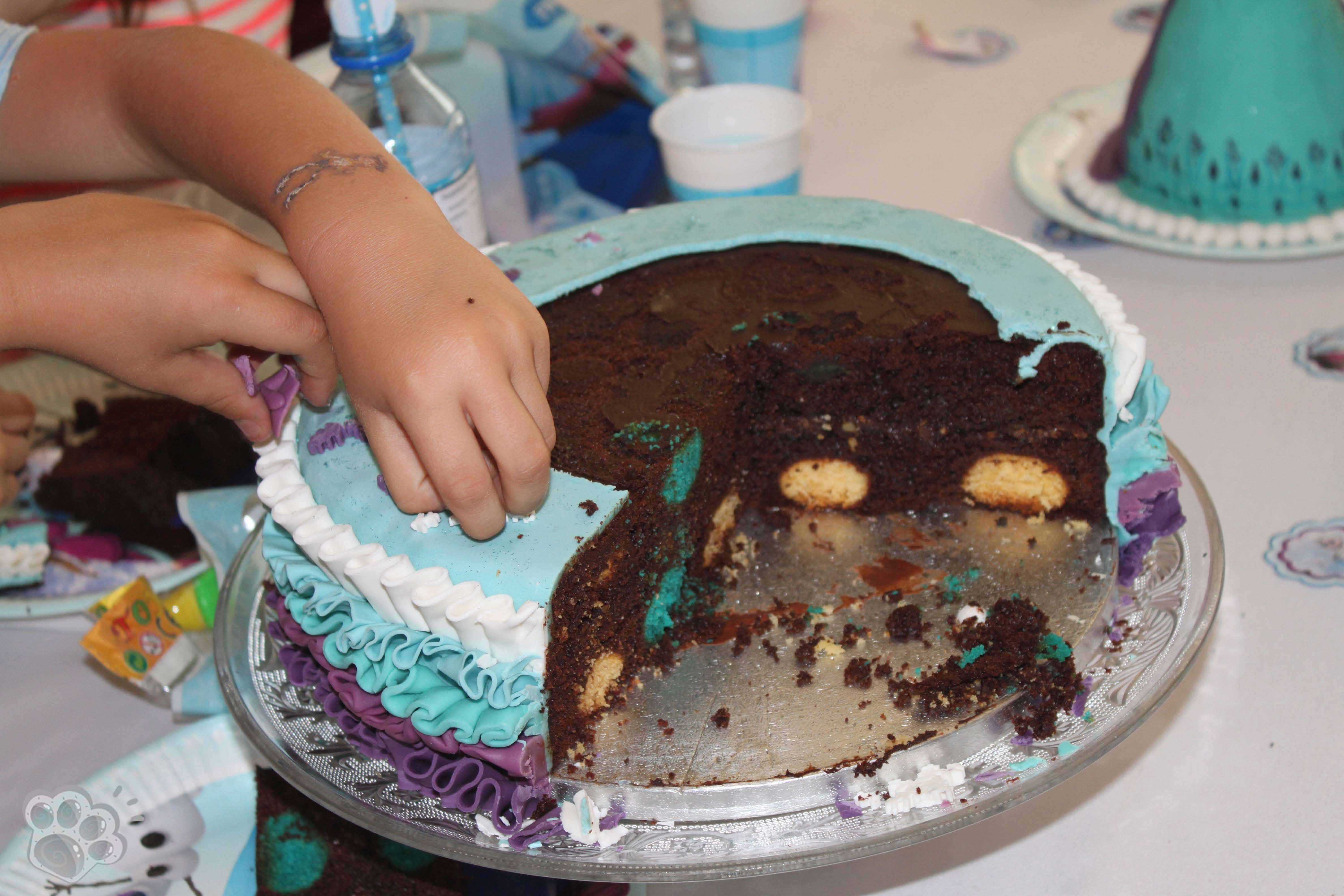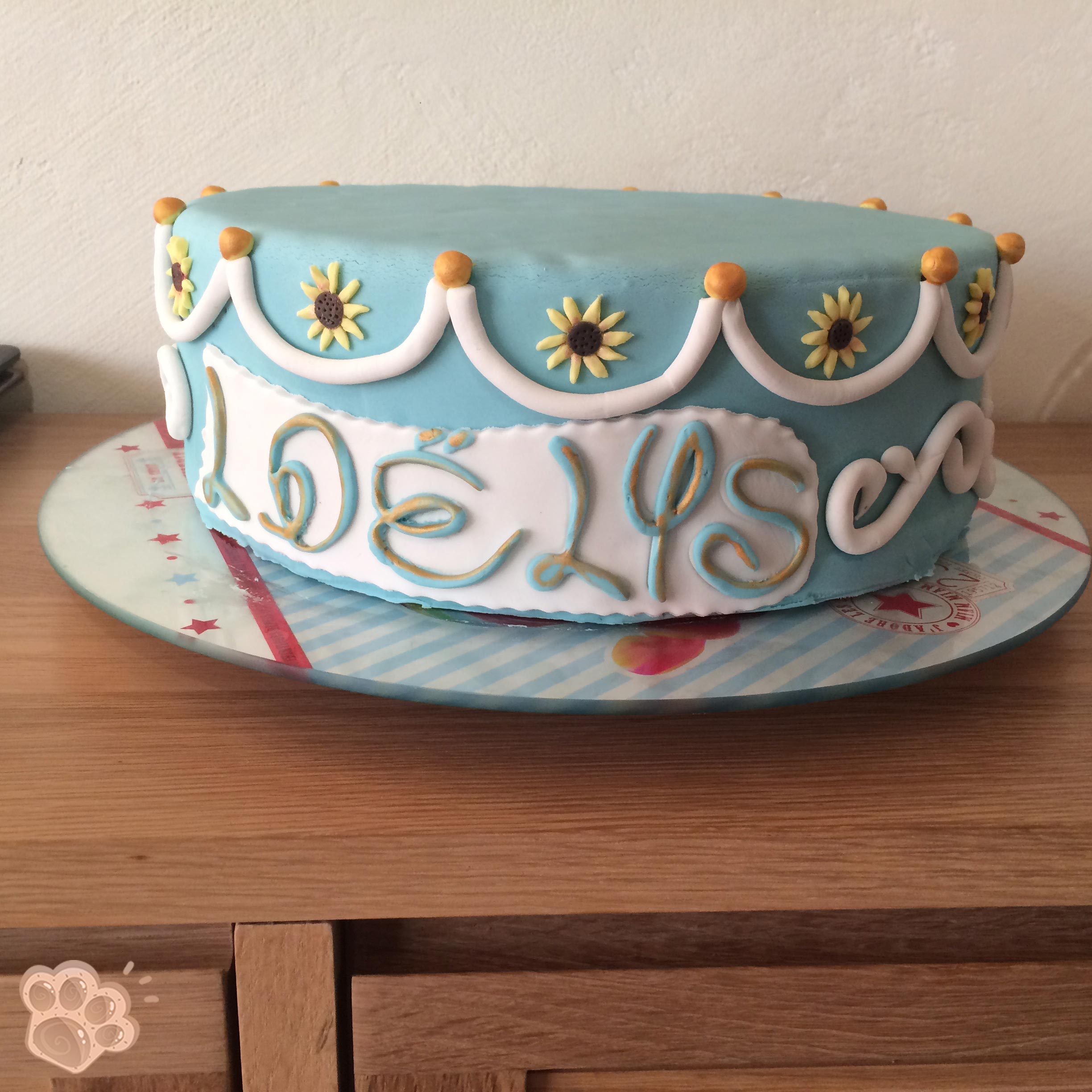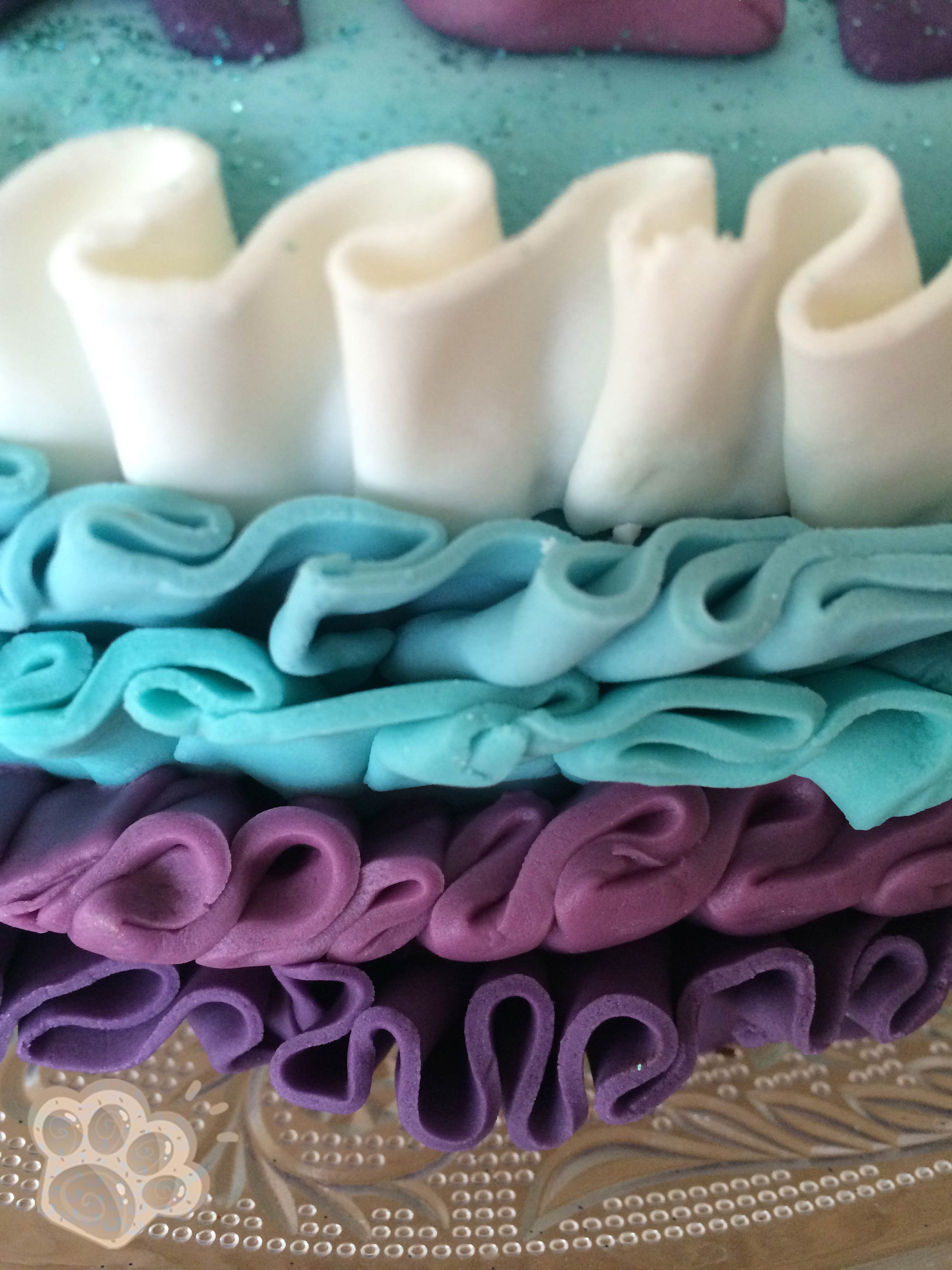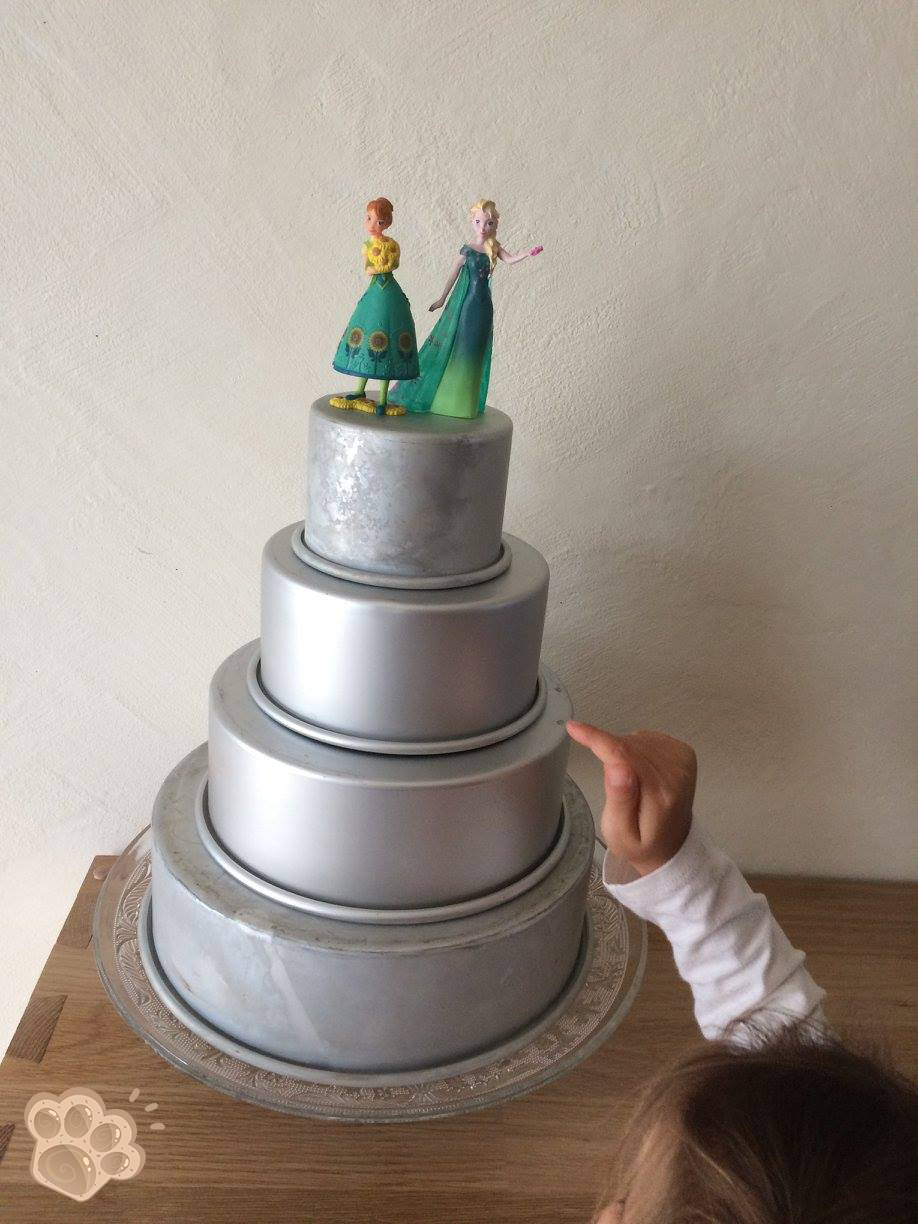 Le gâteau du bas sera un simple dummy (= rond de polystyrène) recouvert de pâte à sucre turquoise (j’aime le côté grandiose des pièces montées mais soyons objectifs, les enfants ne mangent pas de grosses quantités de gâteau donc un seul vrai gâteau suffira amplement!)