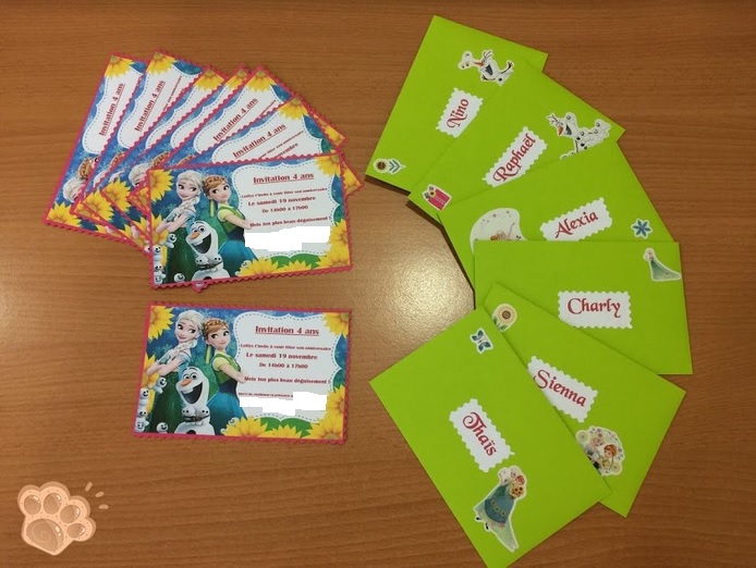 - Le nombre d’invités et leurs noms (pas facile l’an passé avec 12 enfants donc on se limite à la règle trouvée sur internet : nombre d’invités =âge de l’enfant + 1 donc ici 8 invités)