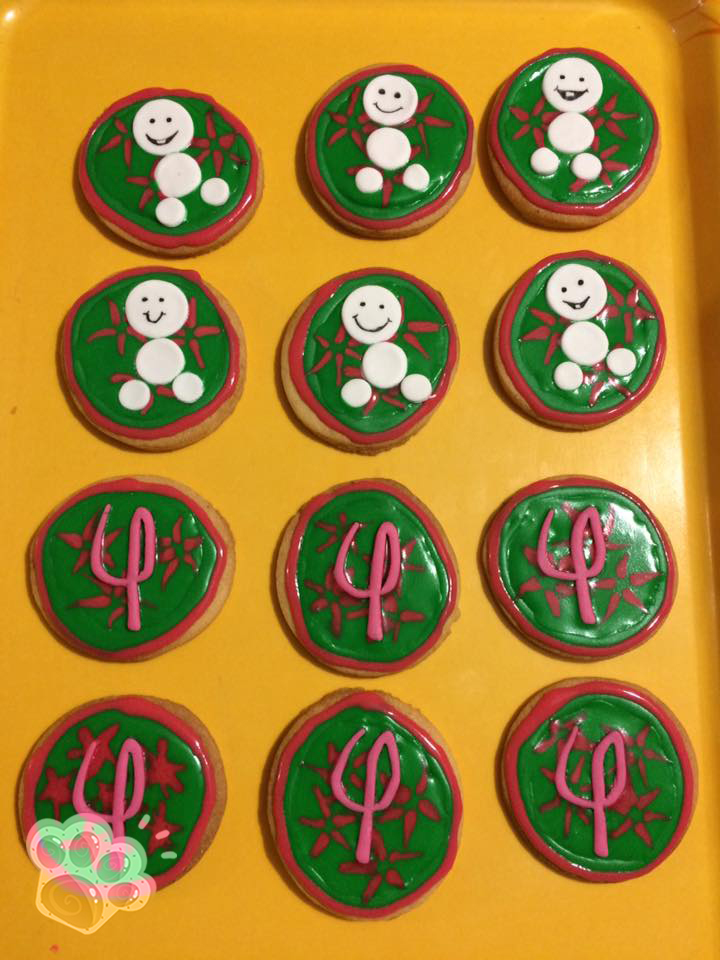 Quand ils sont bien froids, peindre en doré les sablés avec de la peinture alimentaire liquide puis une fois que la couche est sèche, dorer une 2ème fois avec un gros pinceau trempé dans de la poudre alimentaire dorée.