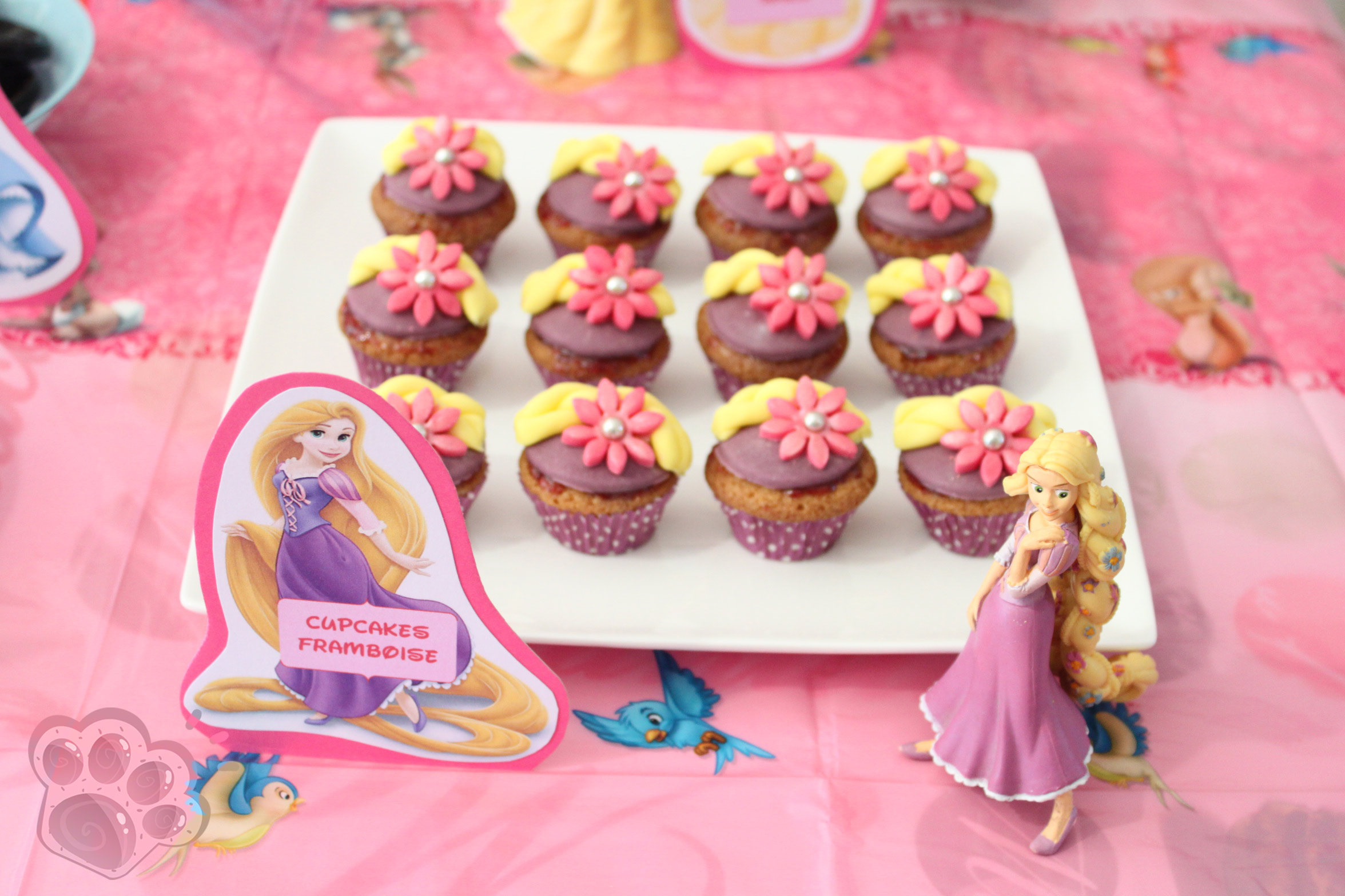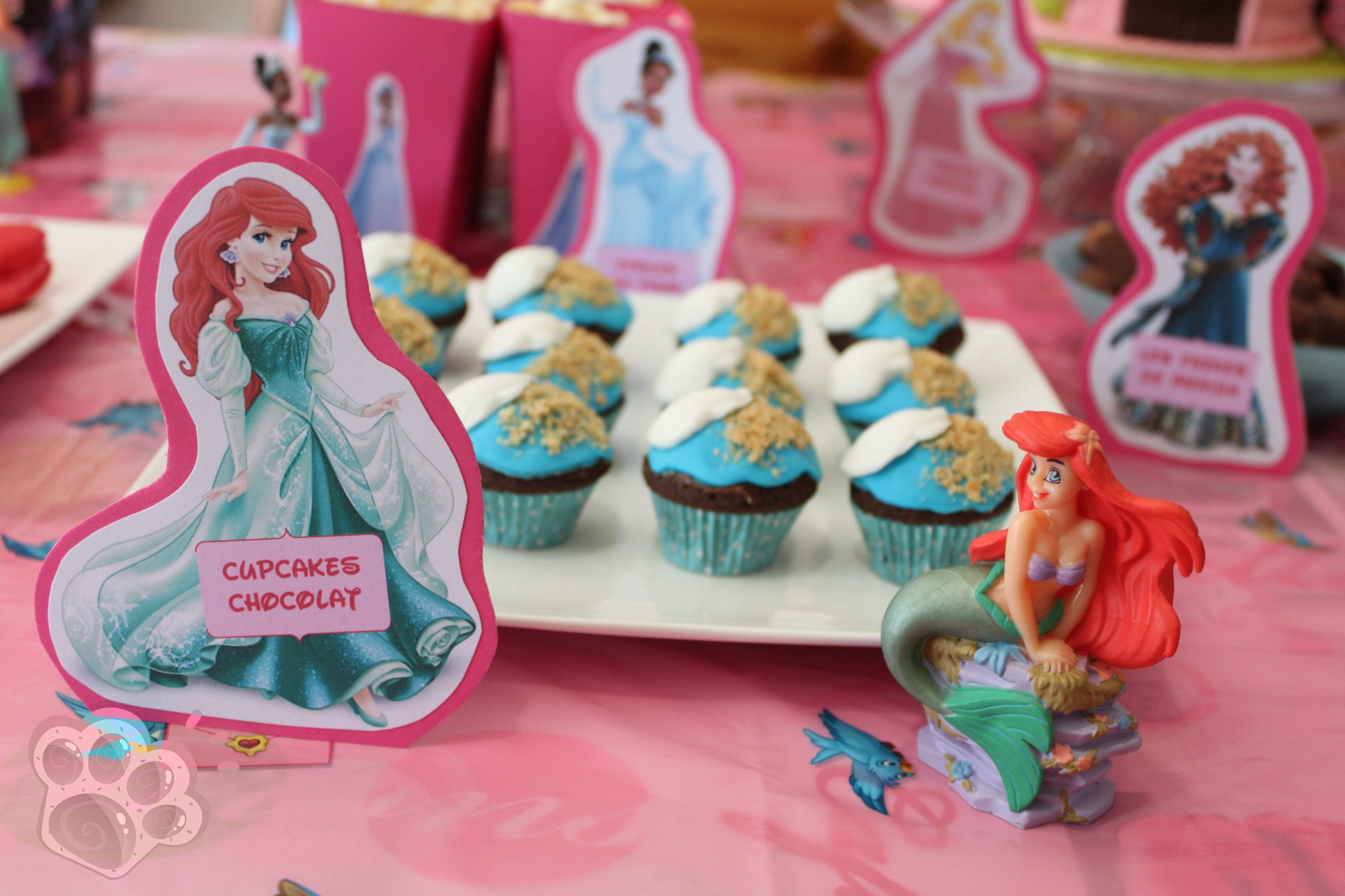 Pour les gourmandises, je choisis d’en faire 2 sortes : des sablés au citron en forme de lampe magique et des cupcakes Jasmine au chocolat avec la chantilly qui forme la robe de la princesse!