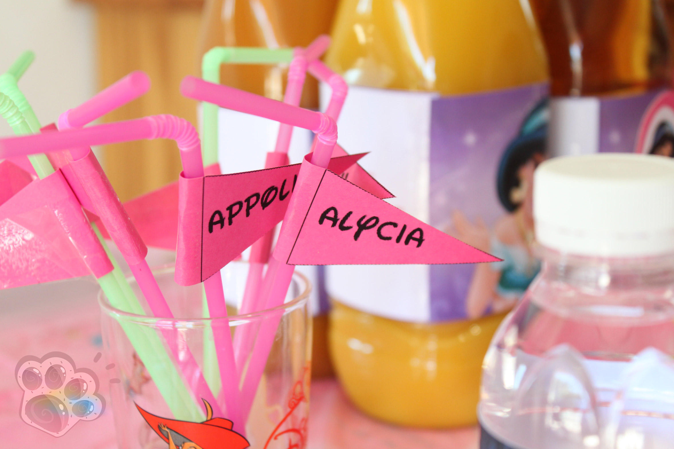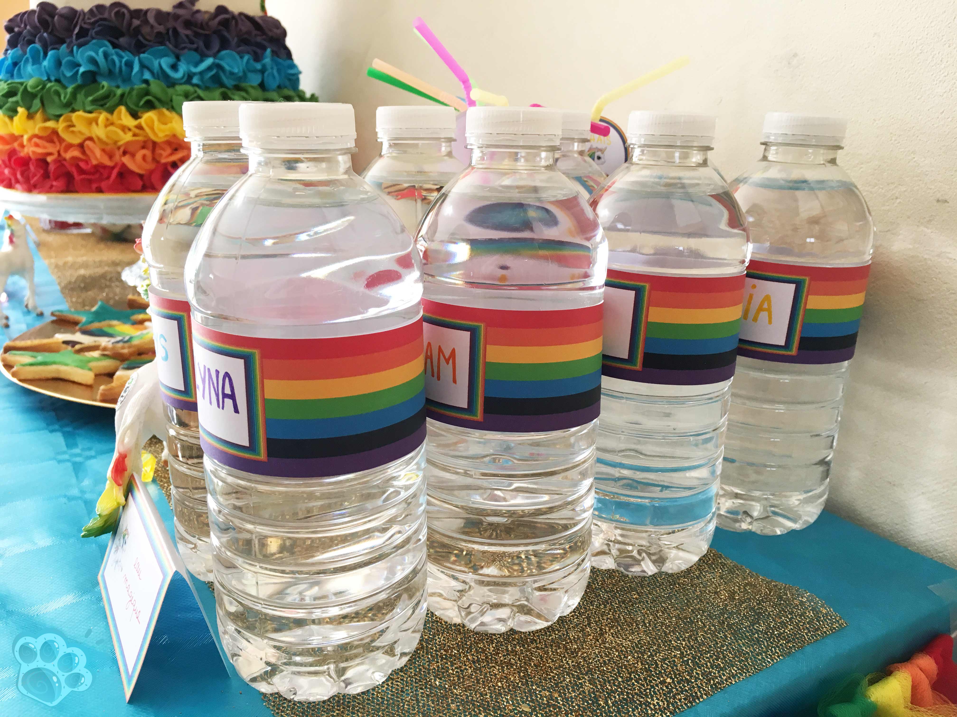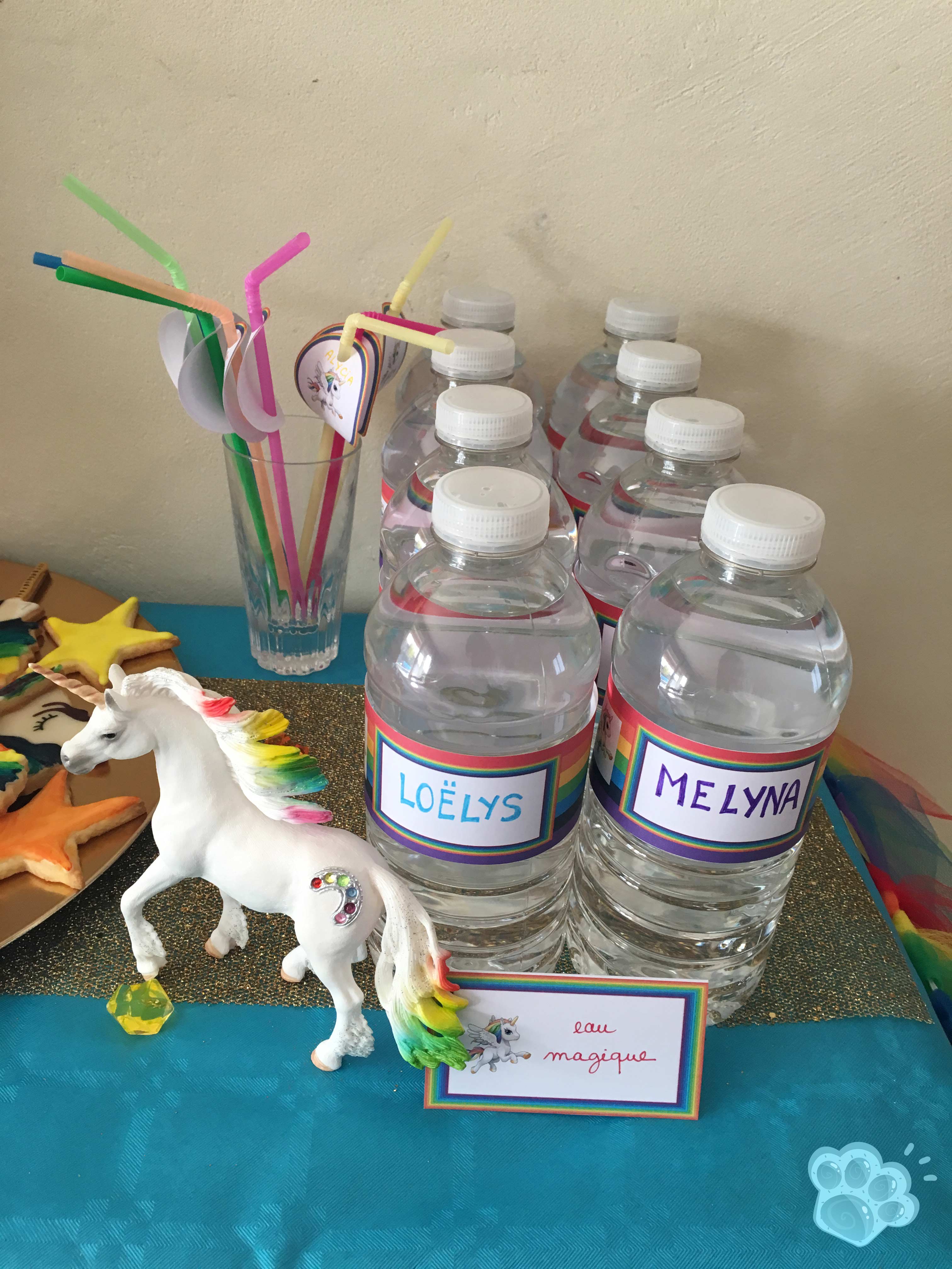 - Des étiquettes pour les petites bouteilles d’eau (là c’est mon côté diététicienne qui ressort de temps en temps, un verre de jus de fruit pour accompagner le gâteau mais le reste de l’après-midi à l’eau!)