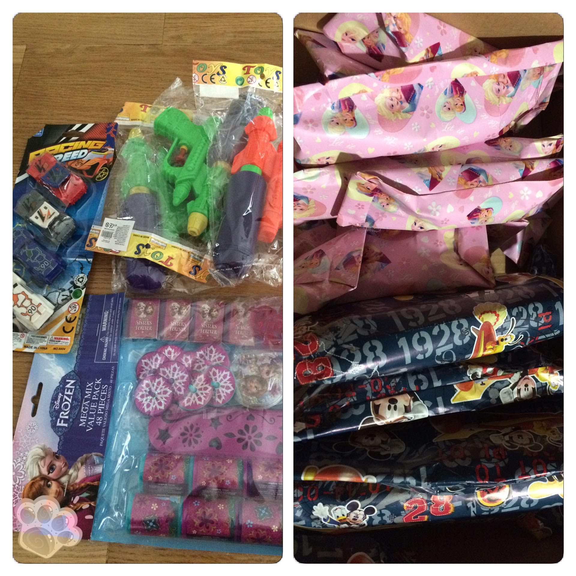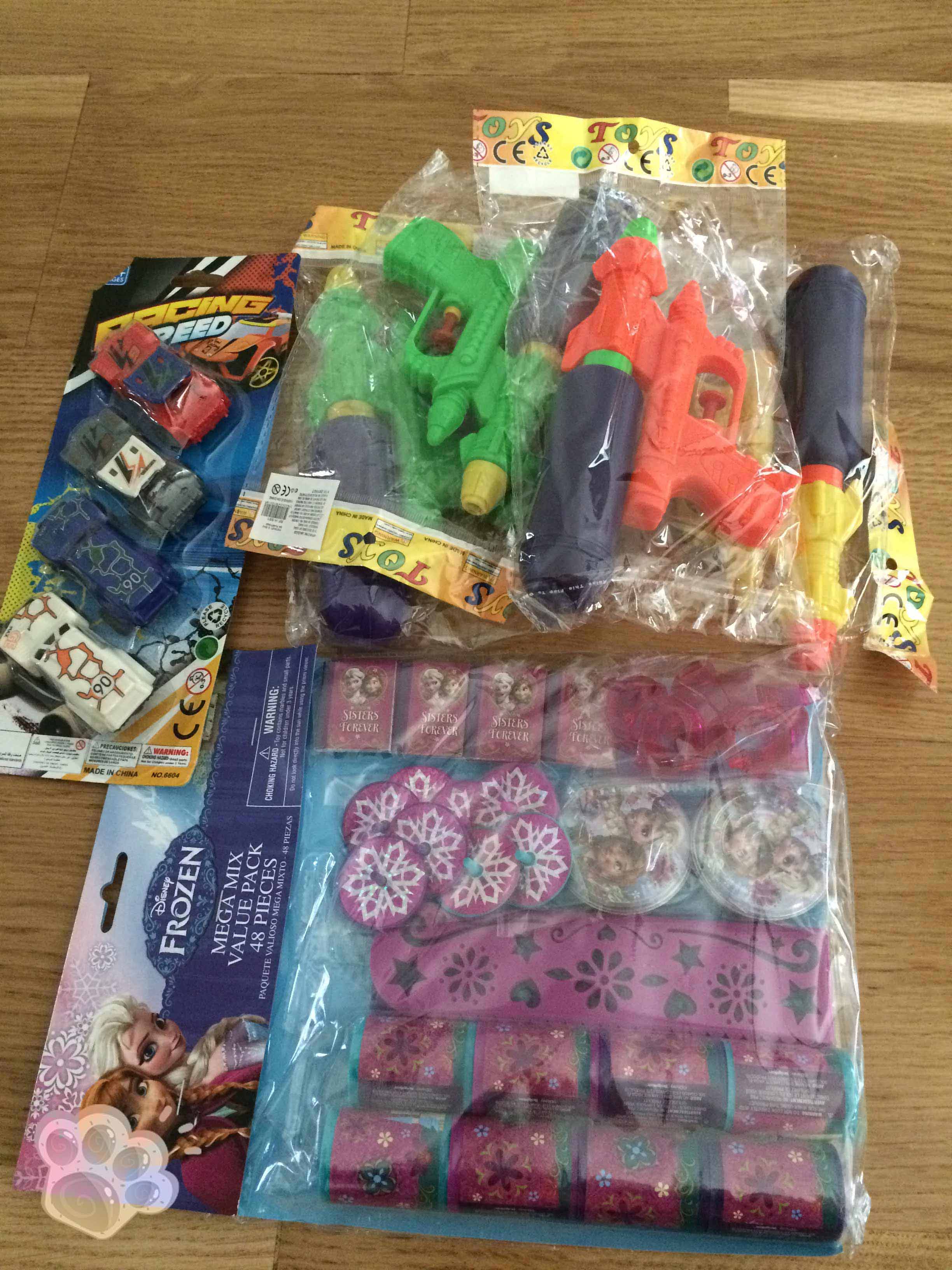 Chaque enfant récupère un petit sachet de bonbons et un pistolet à eau