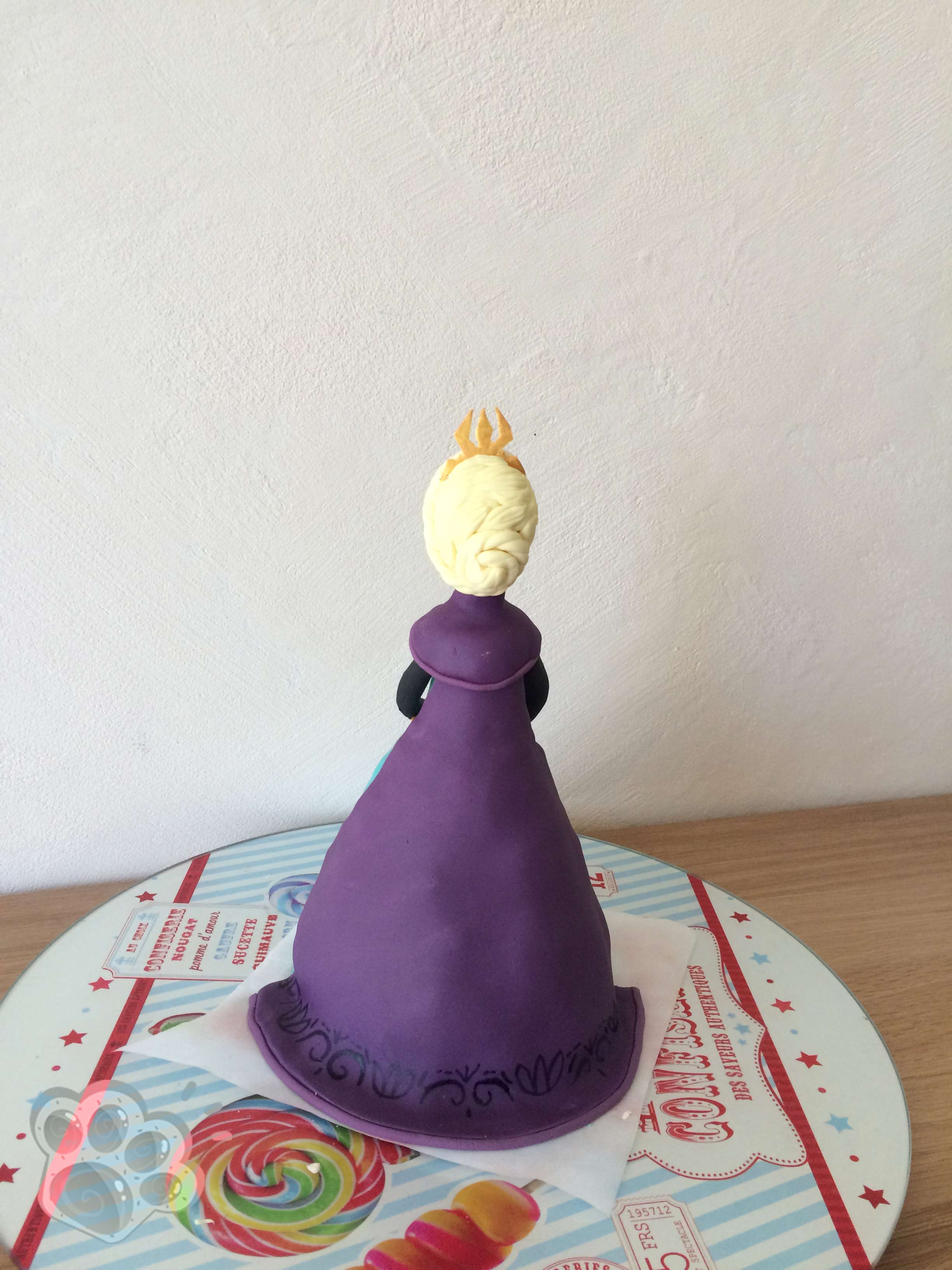 10-Recouvrir un support en carton de 15 cm de diamètre de pâte à sucre violette. Coller le palais au centre puis ajouter des perles dorée tout autour. Coller le décor sur le haut du gâteau.