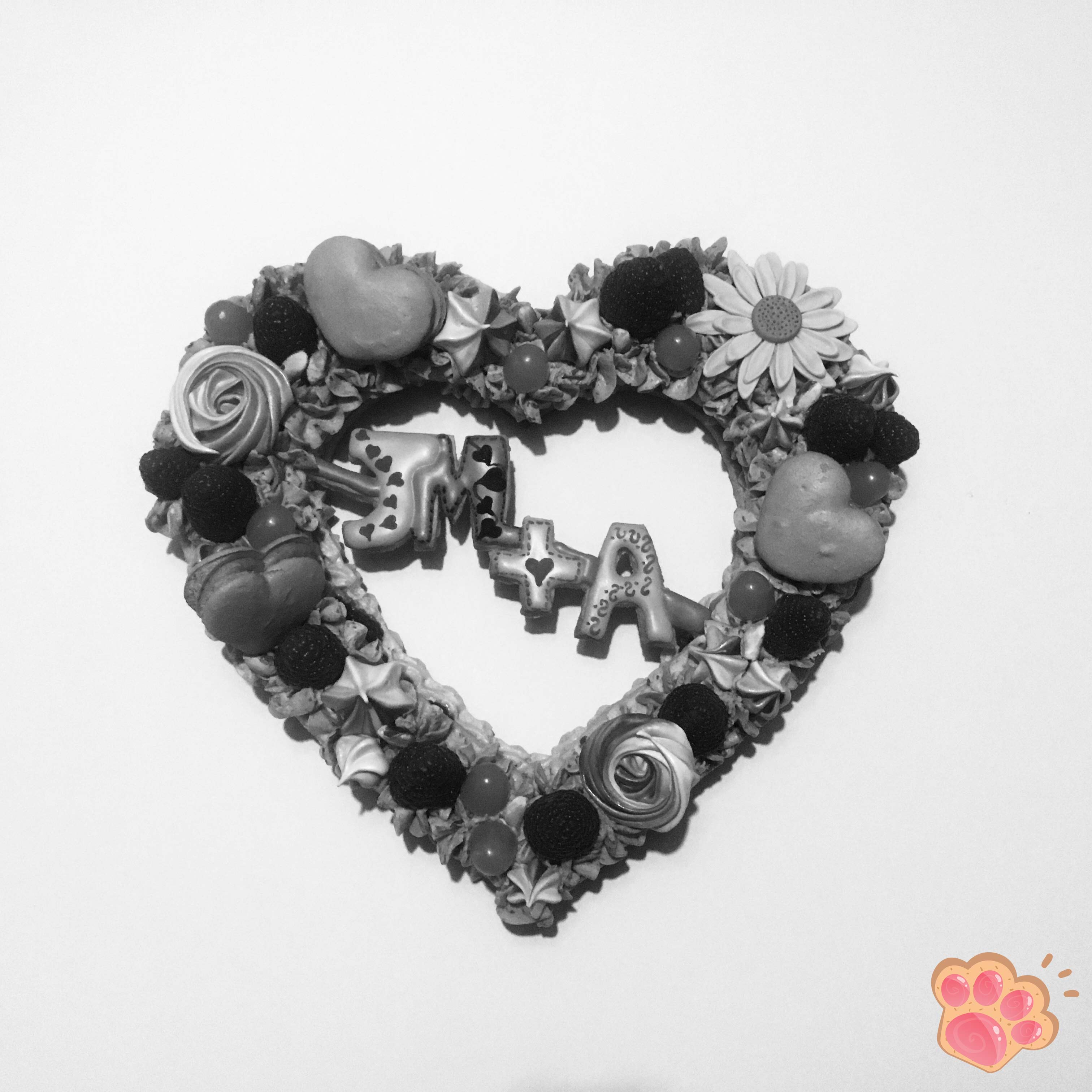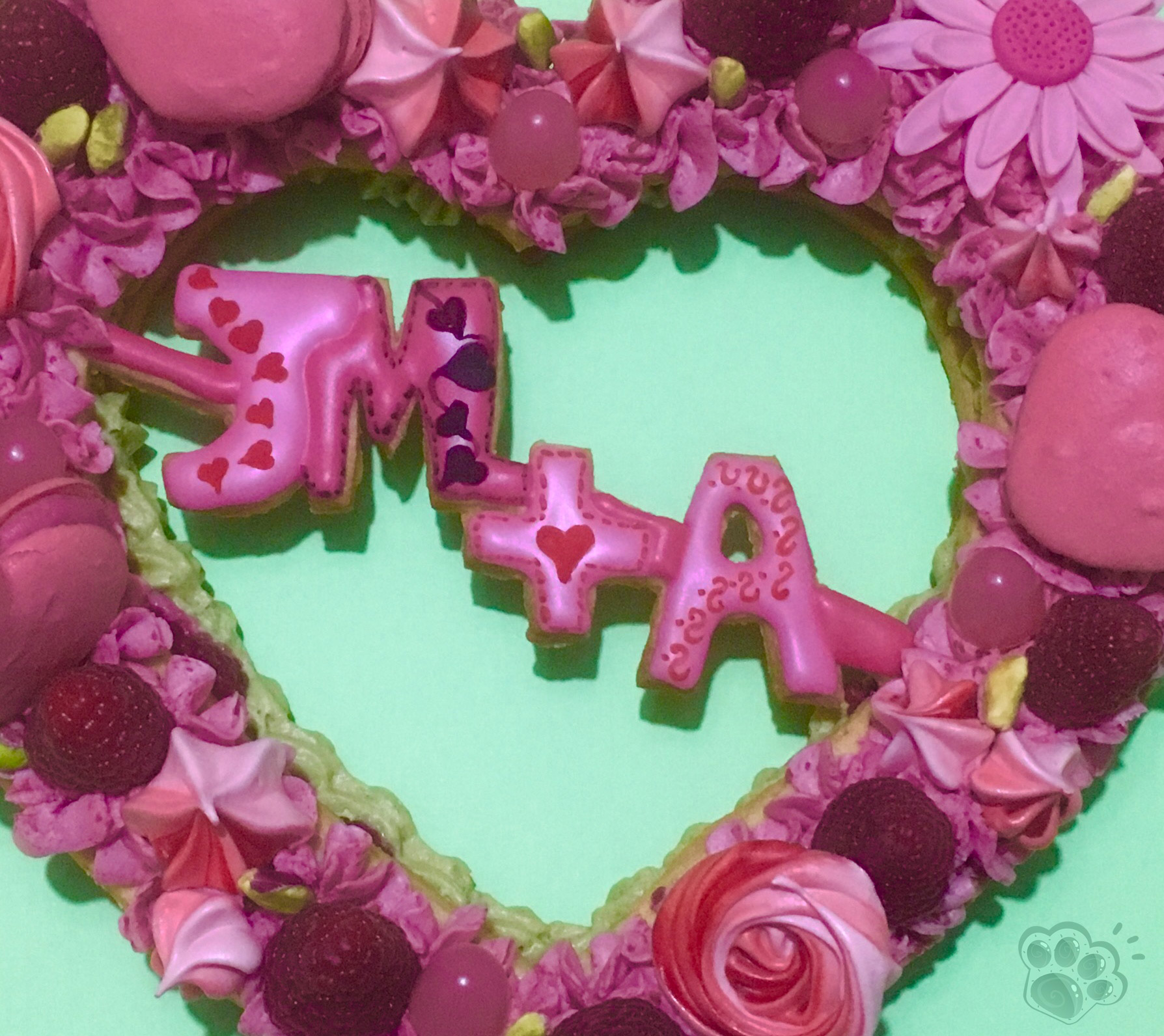 1-Déposer sur le plat de service le premier cœur en pâte sablée sans les lettres des prénoms.