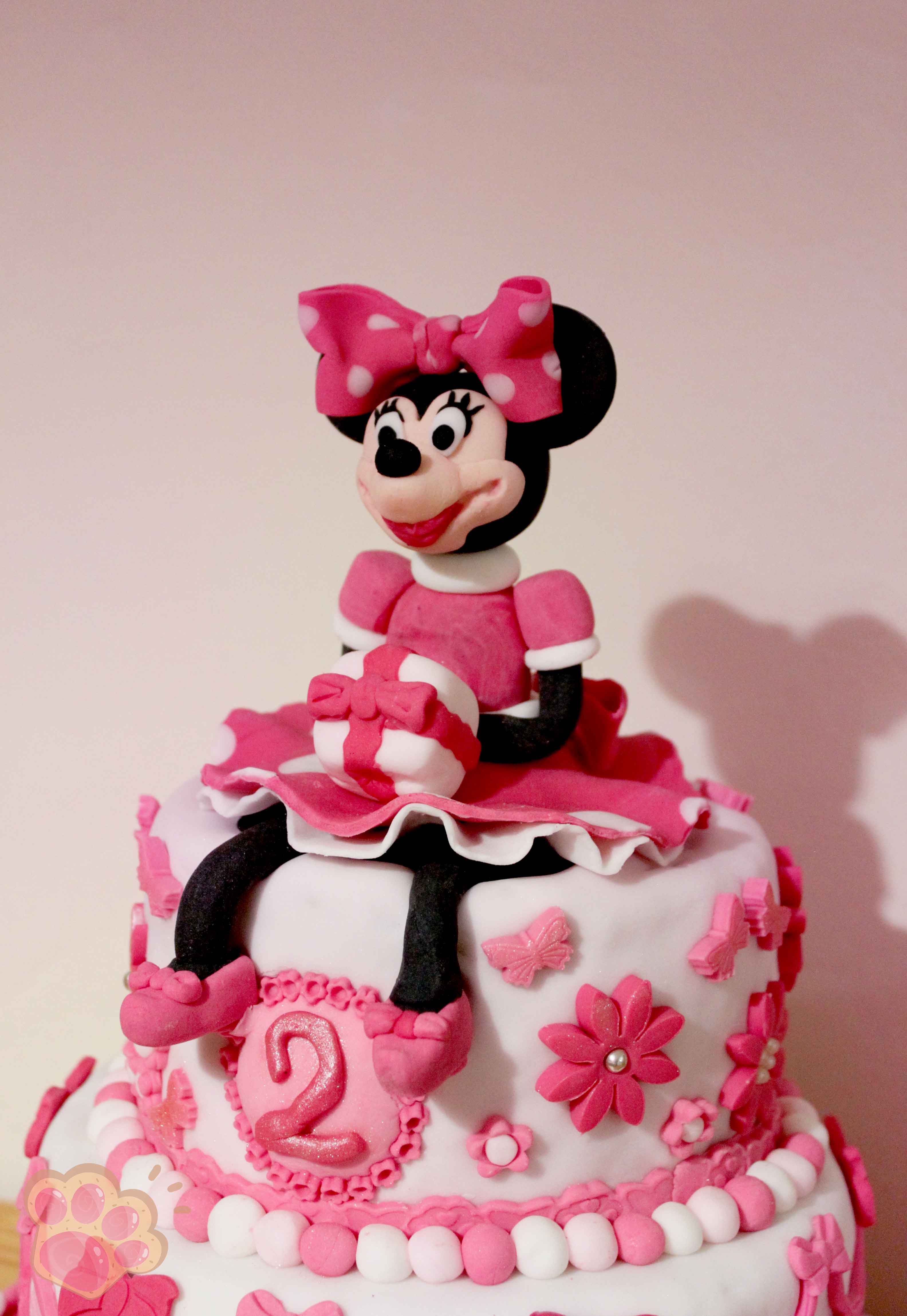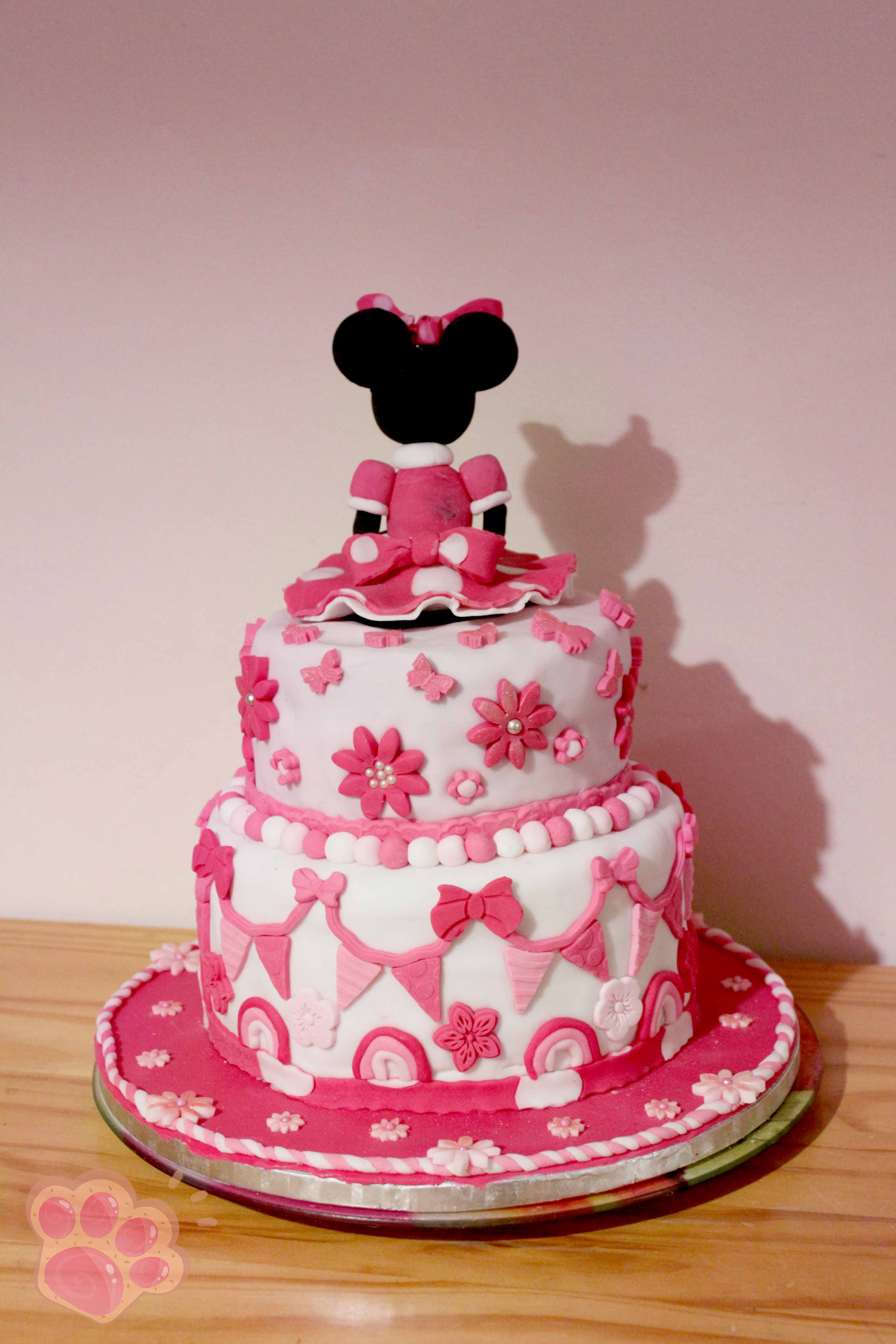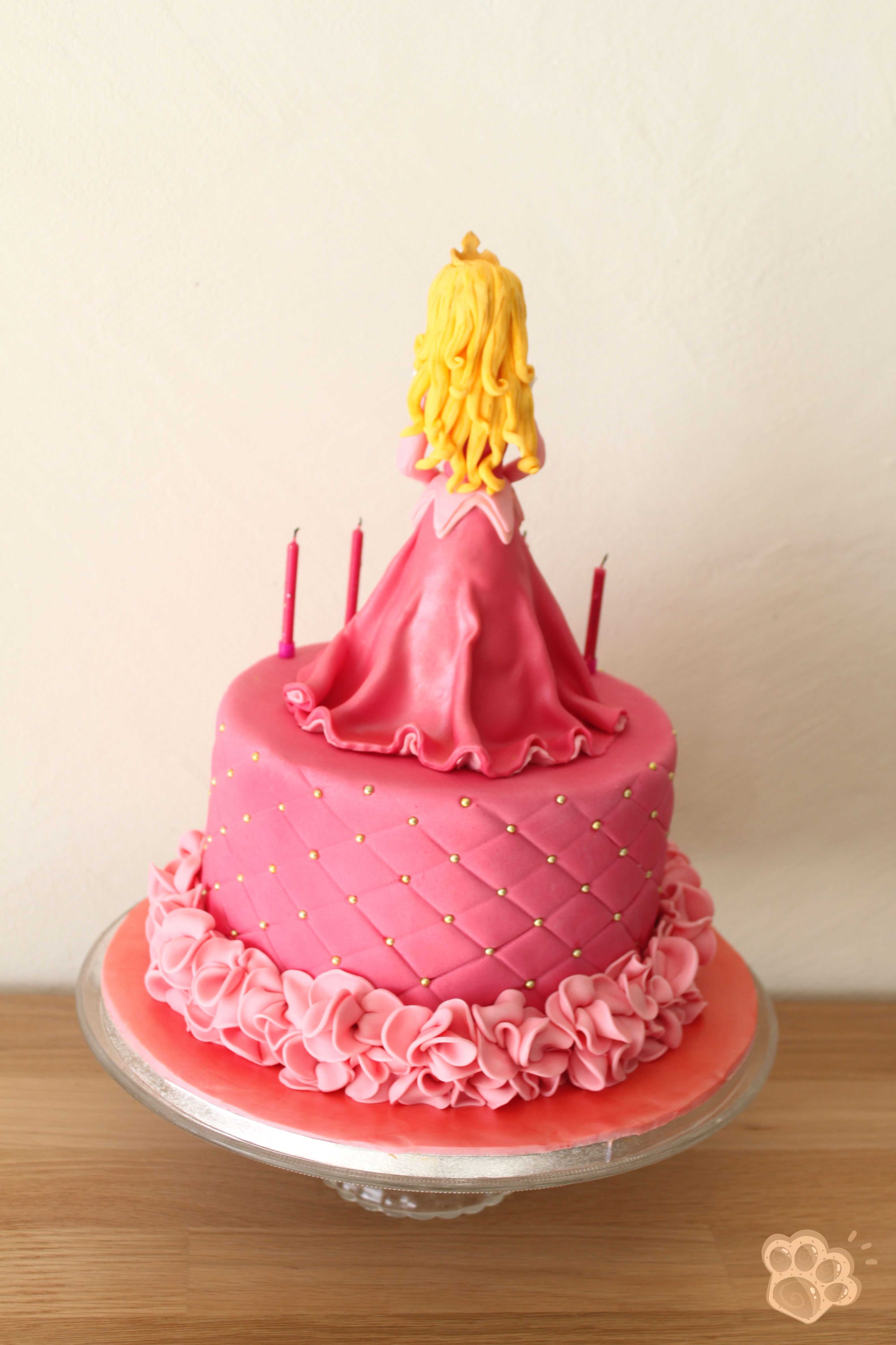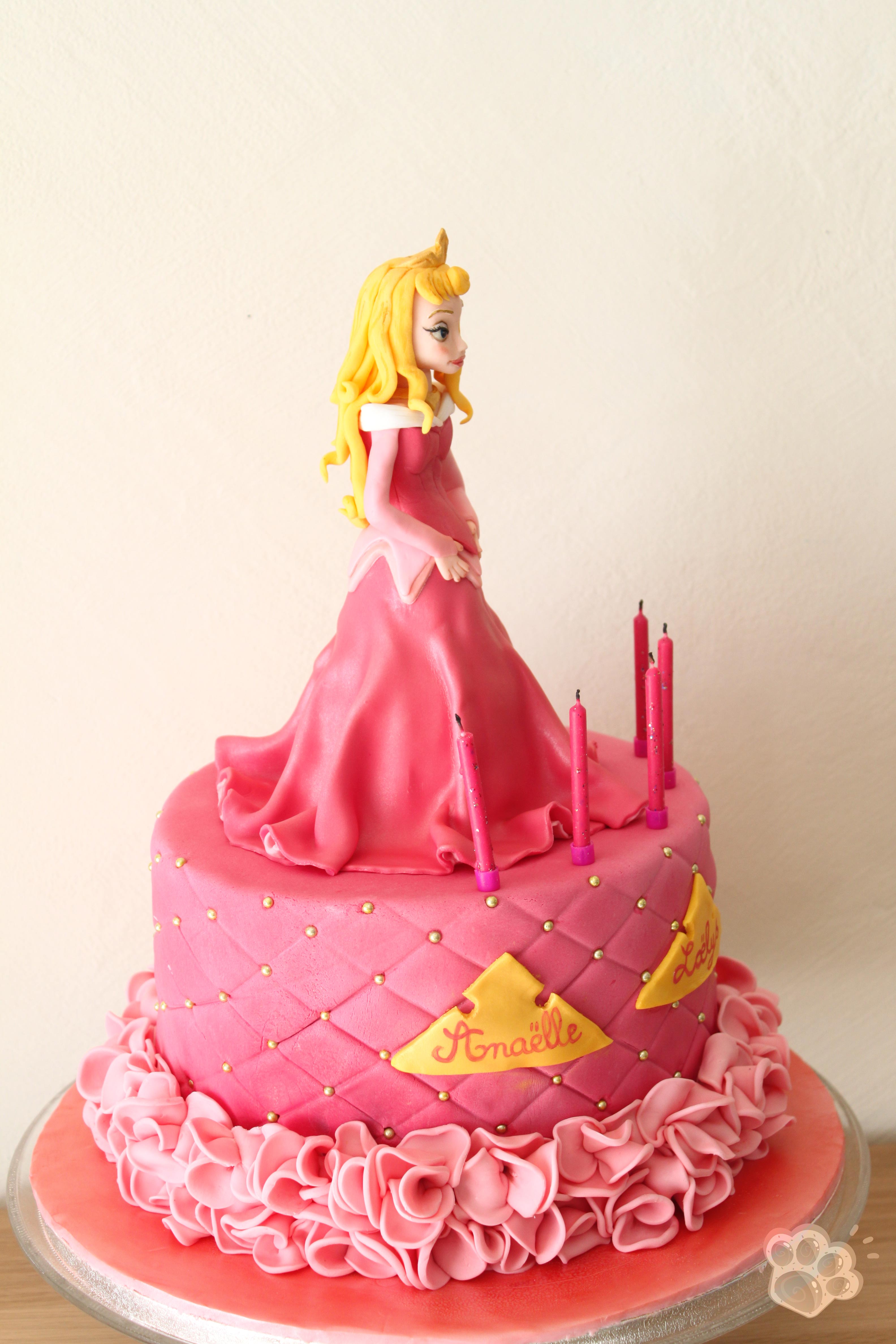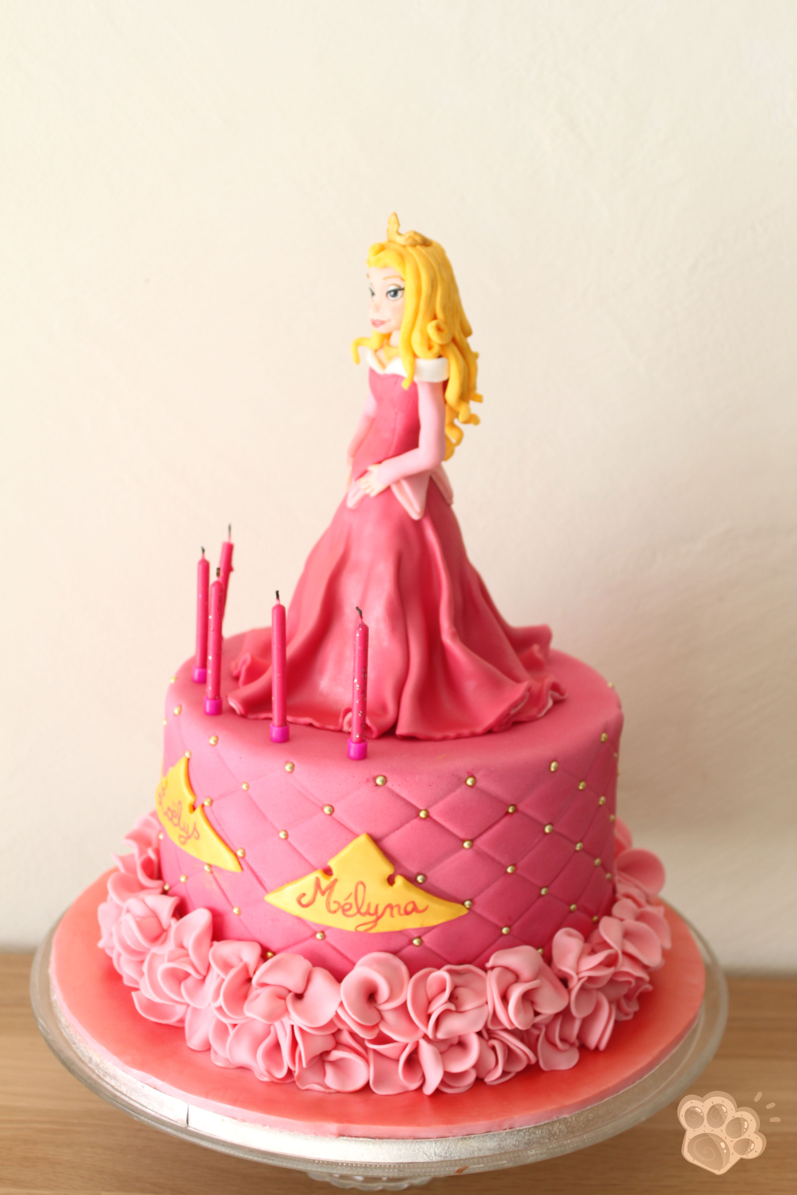 6-Mettre le ruban rose en bas du gâteau juste pour situer sa hauteur il faudra l’enlever après pour que la pâte à sucre sèche (grosse erreur de ma part ici je l’ai laissé sur de la pâte à sucre fraîche et elle avait un peu coulé le lendemain sous le ruban)