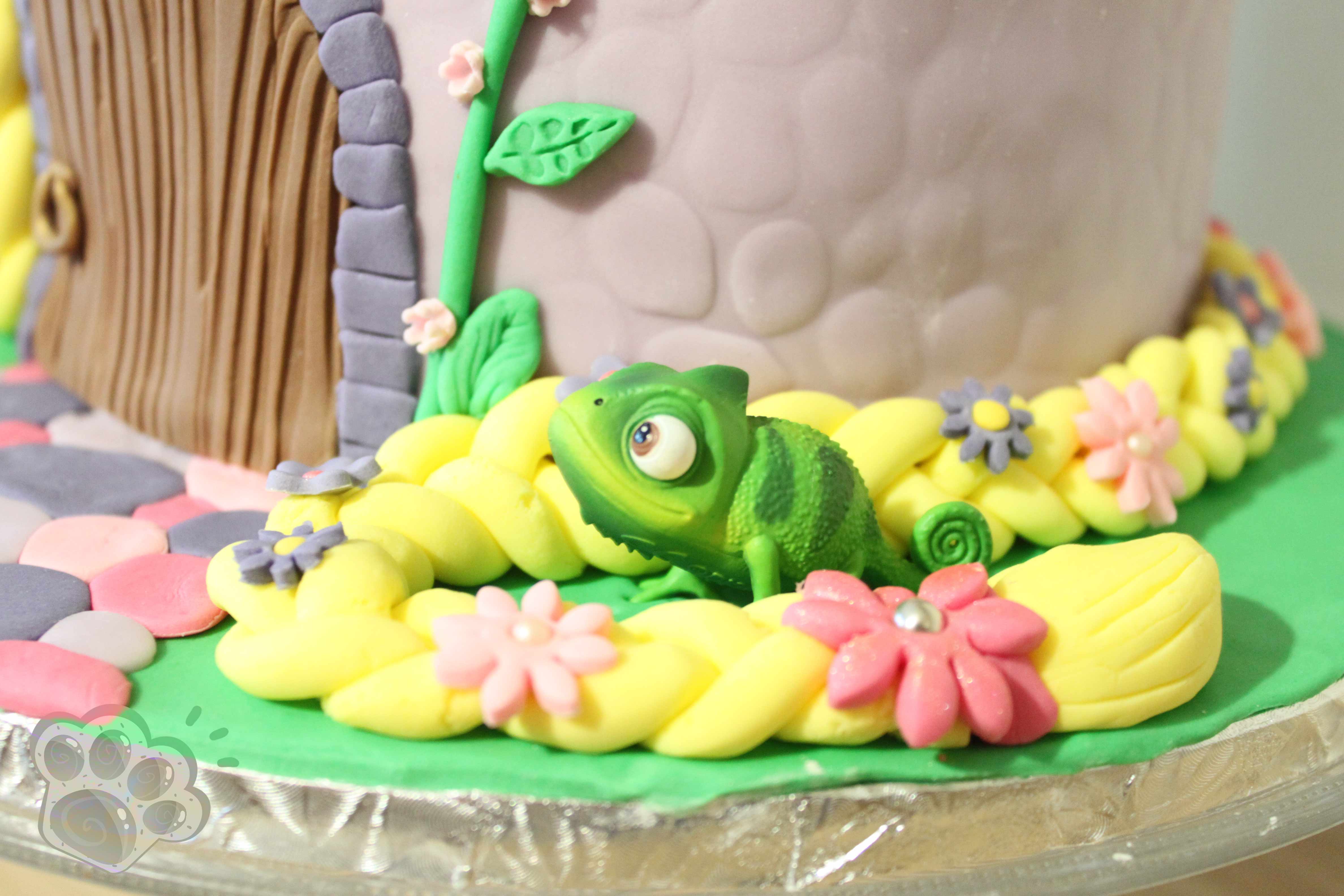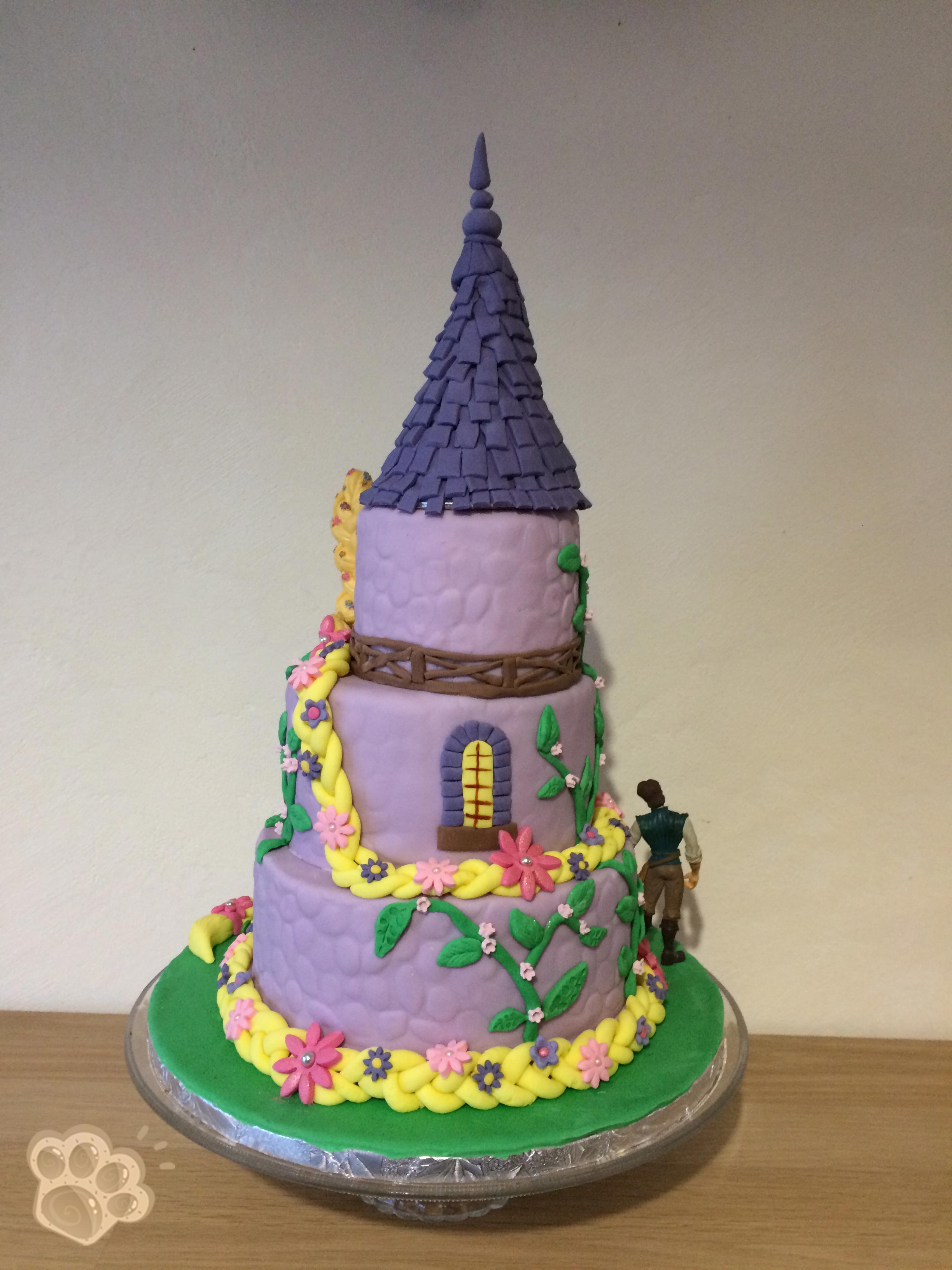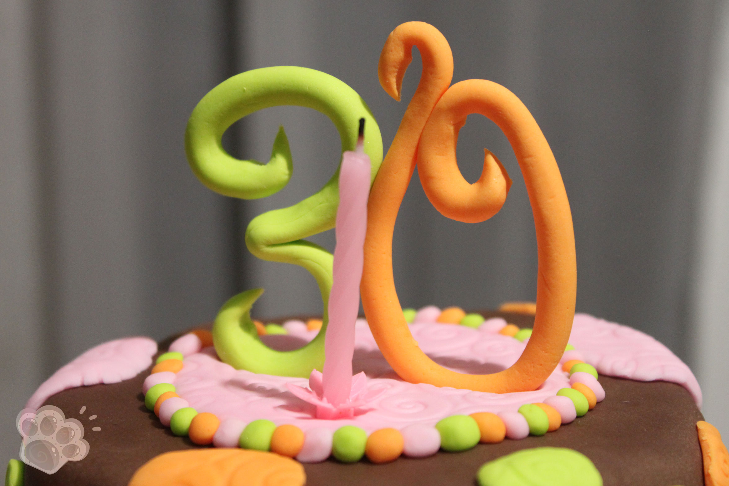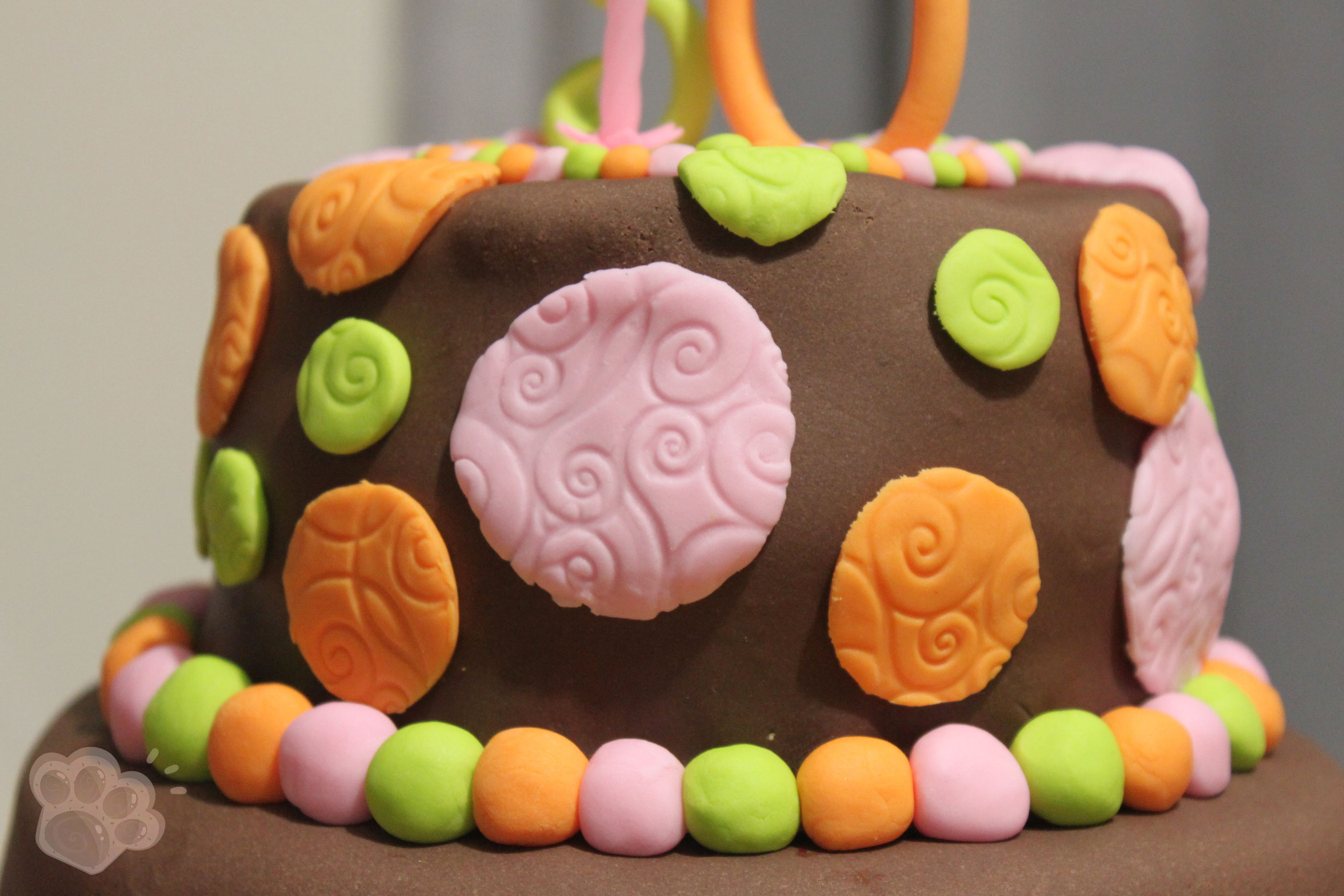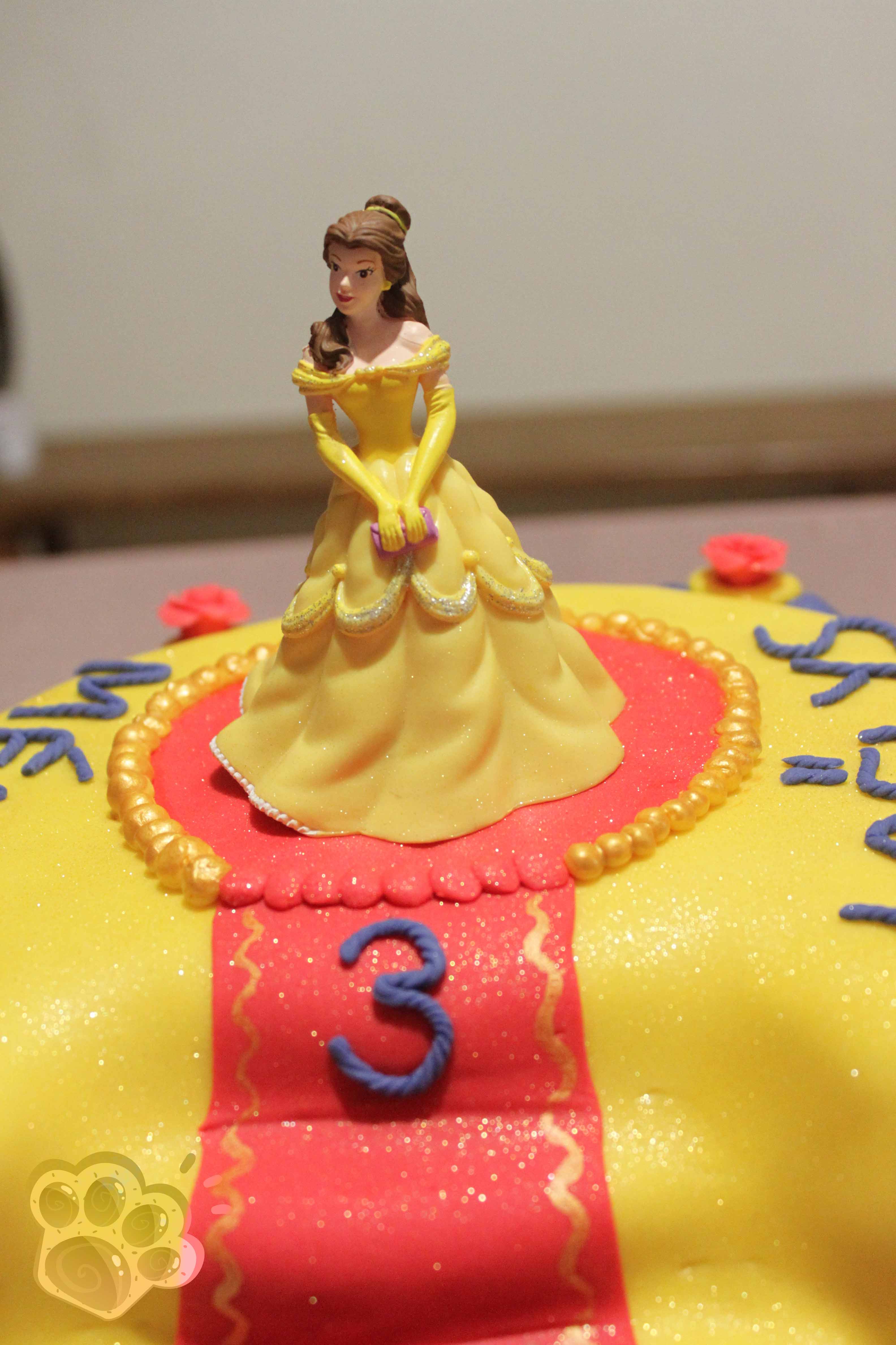 6-Mettre le ruban rose en bas du gâteau juste pour situer sa hauteur il faudra l’enlever après pour que la pâte à sucre sèche (grosse erreur de ma part ici je l’ai laissé sur de la pâte à sucre fraîche et elle avait un peu coulé le lendemain sous le ruban)