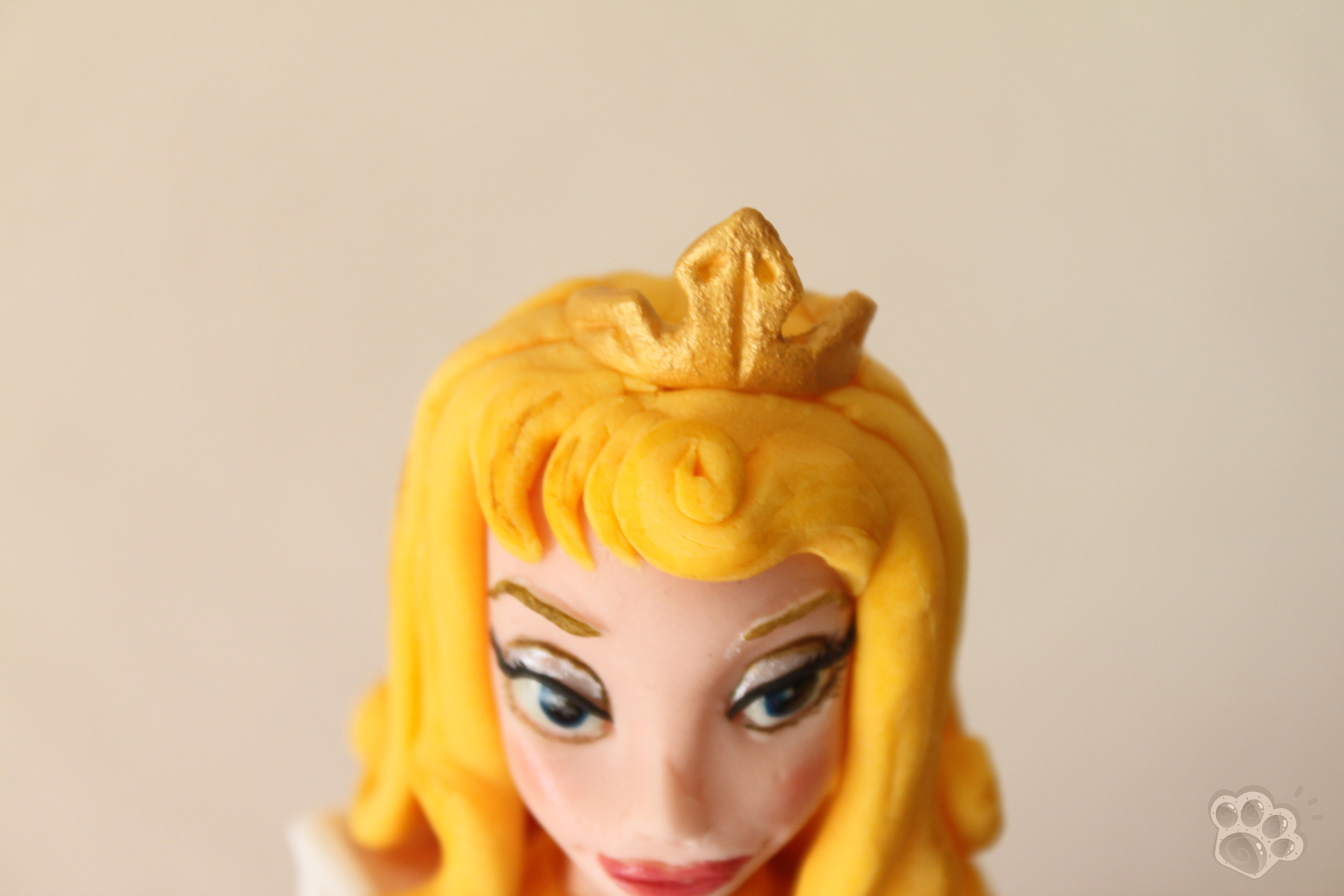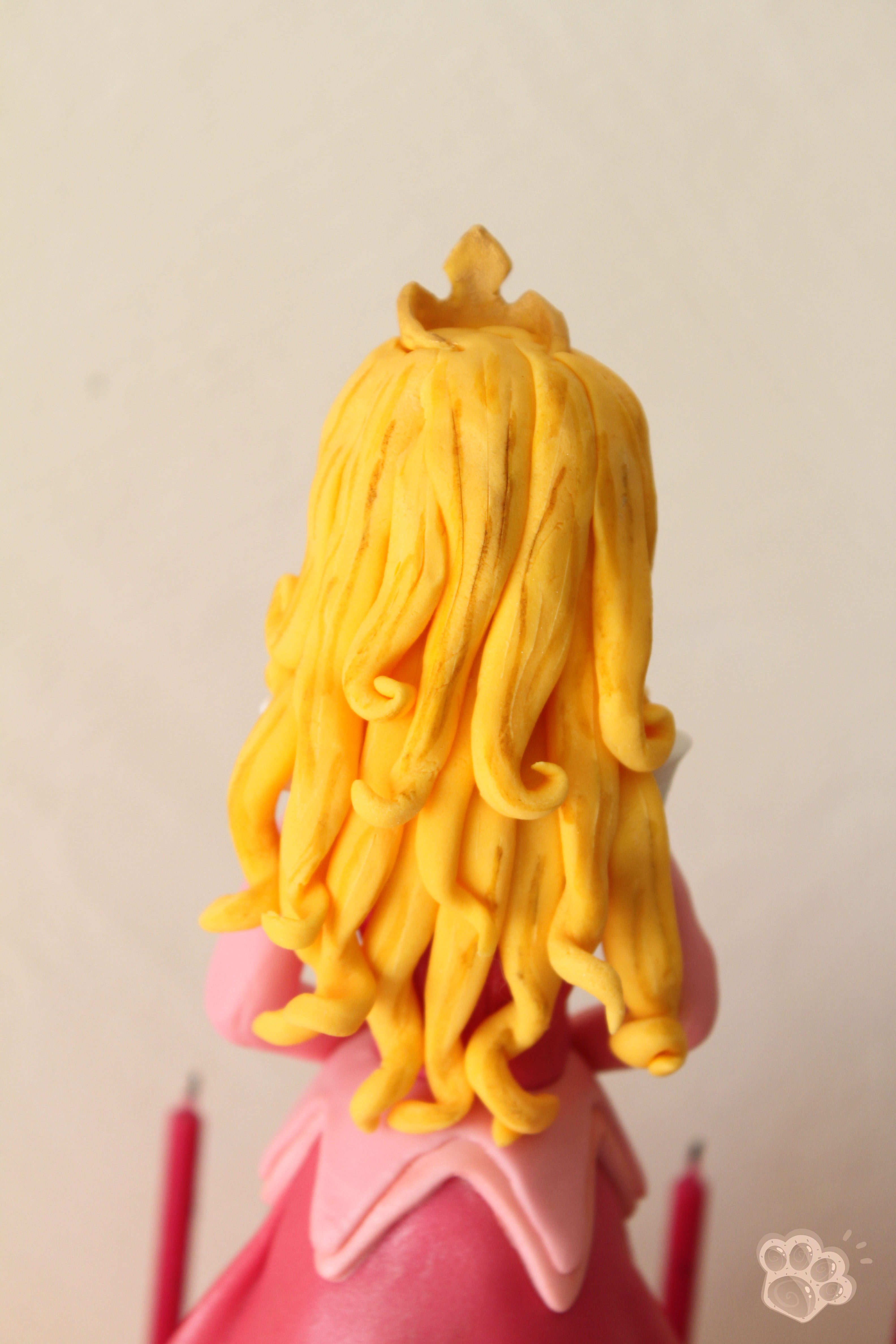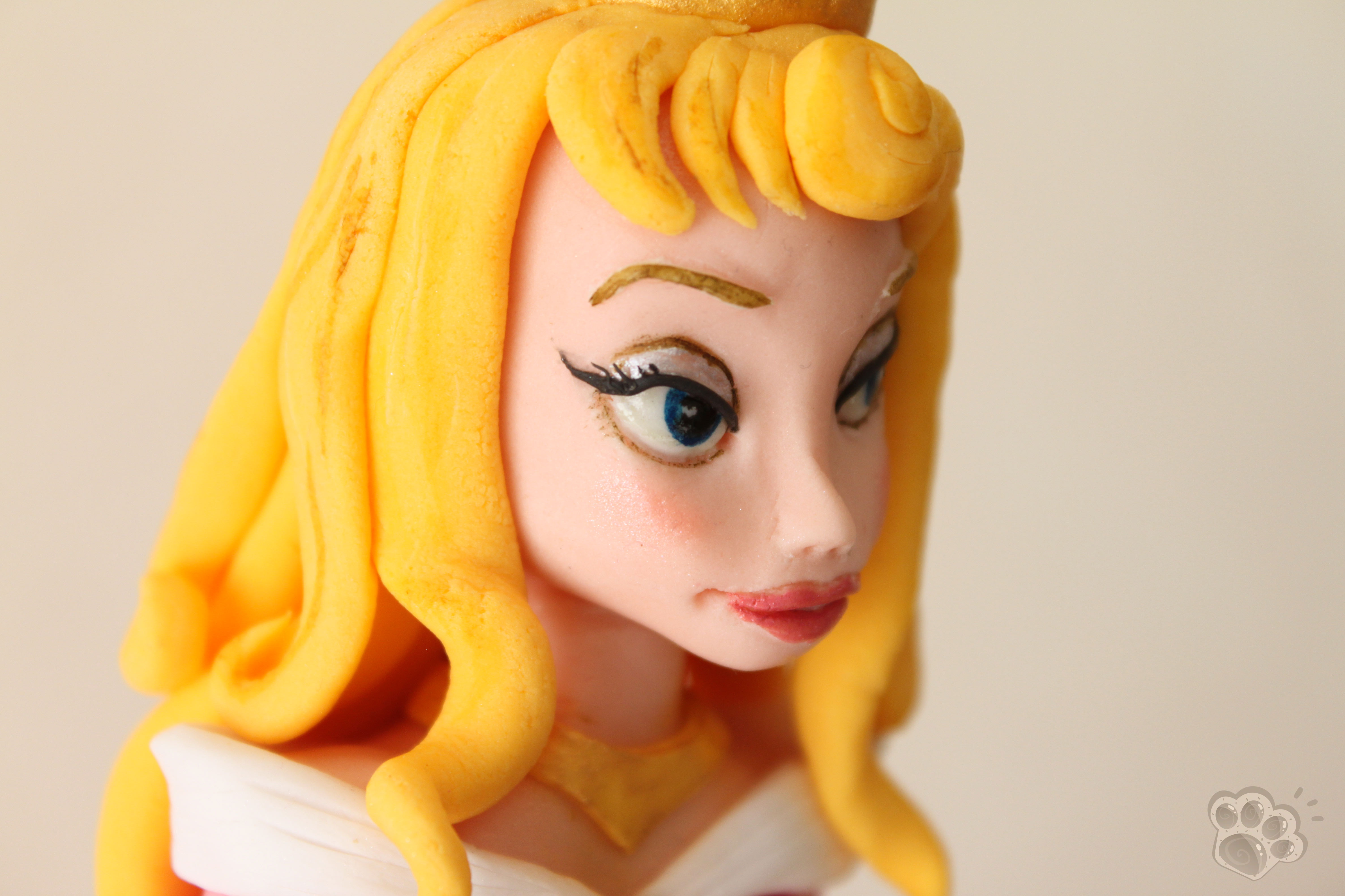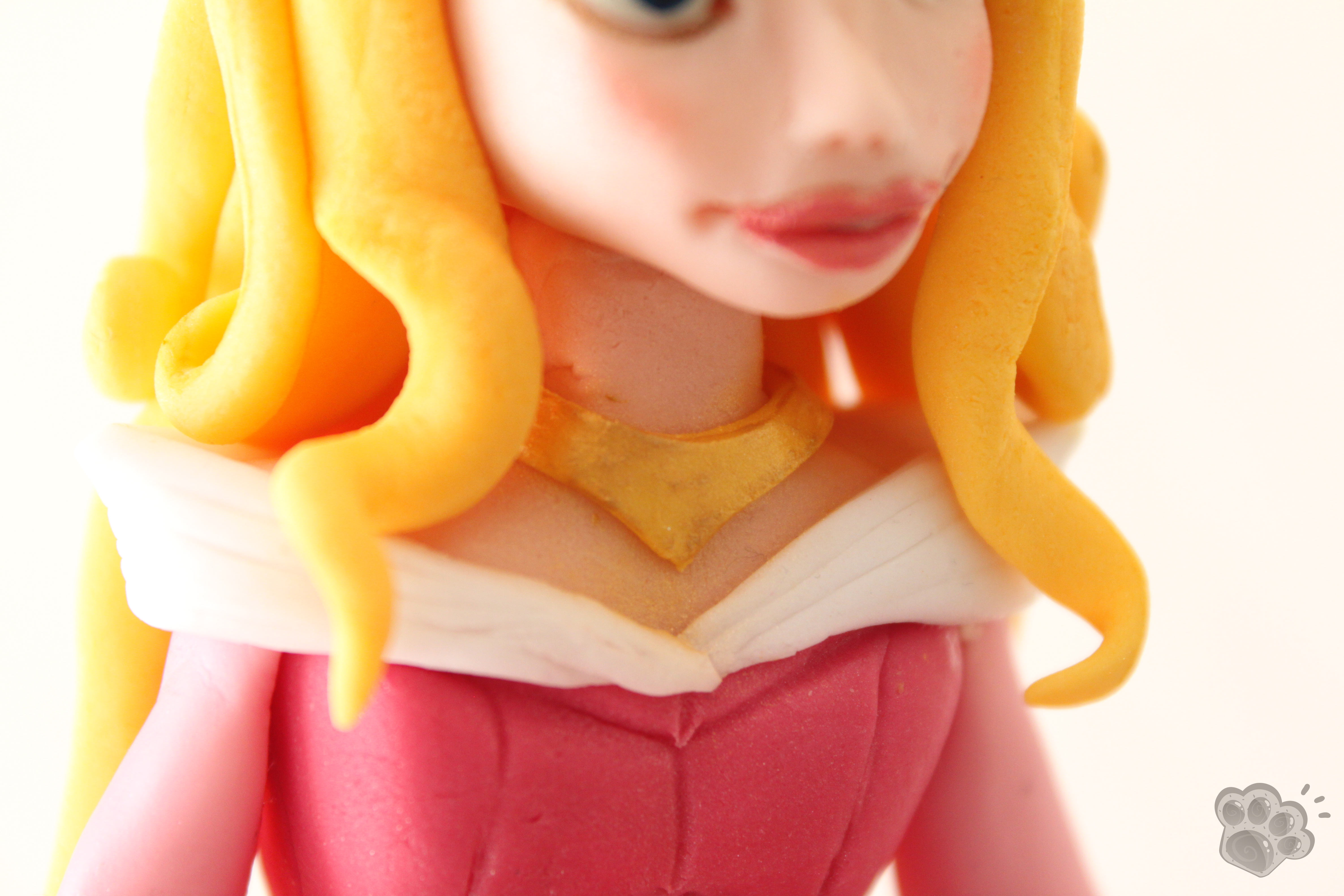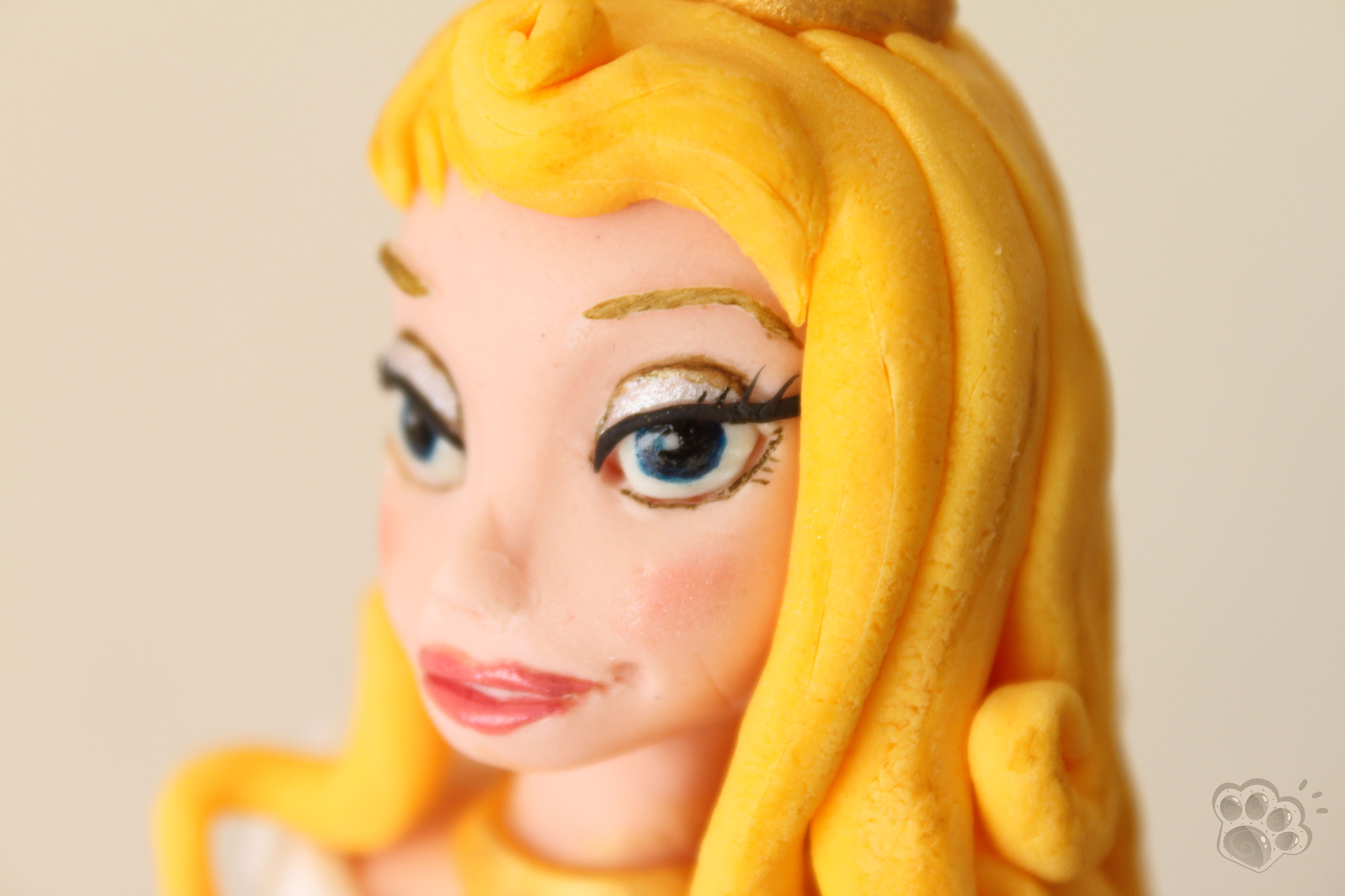 Et des plus complexes avec 2 épaisseurs de fleurs collées en décalé. J’ai ajouté ensuite des petits « poils » en faisant une mini bande de pâte à sucre et avec un ciseau à couture des crans.