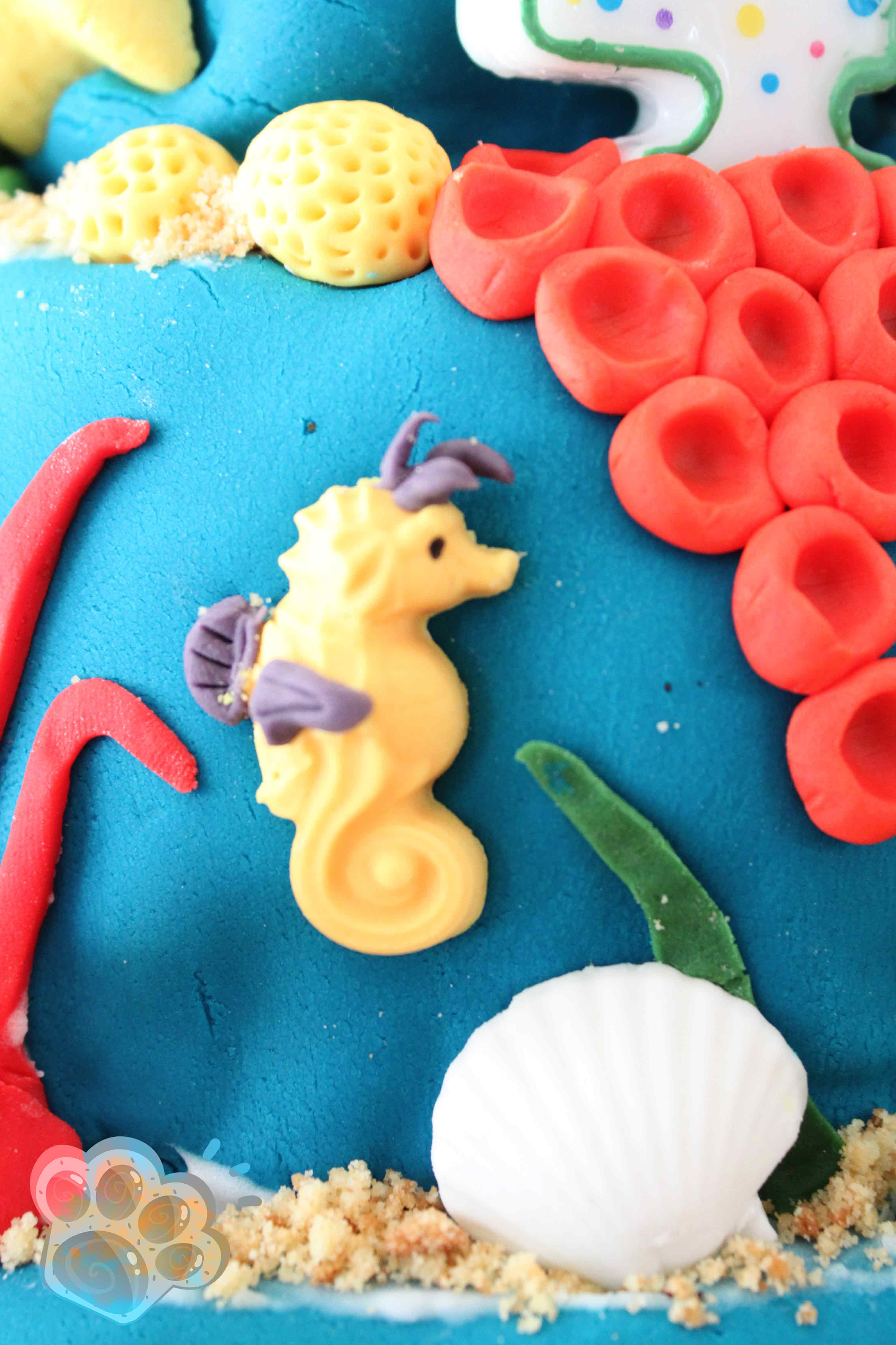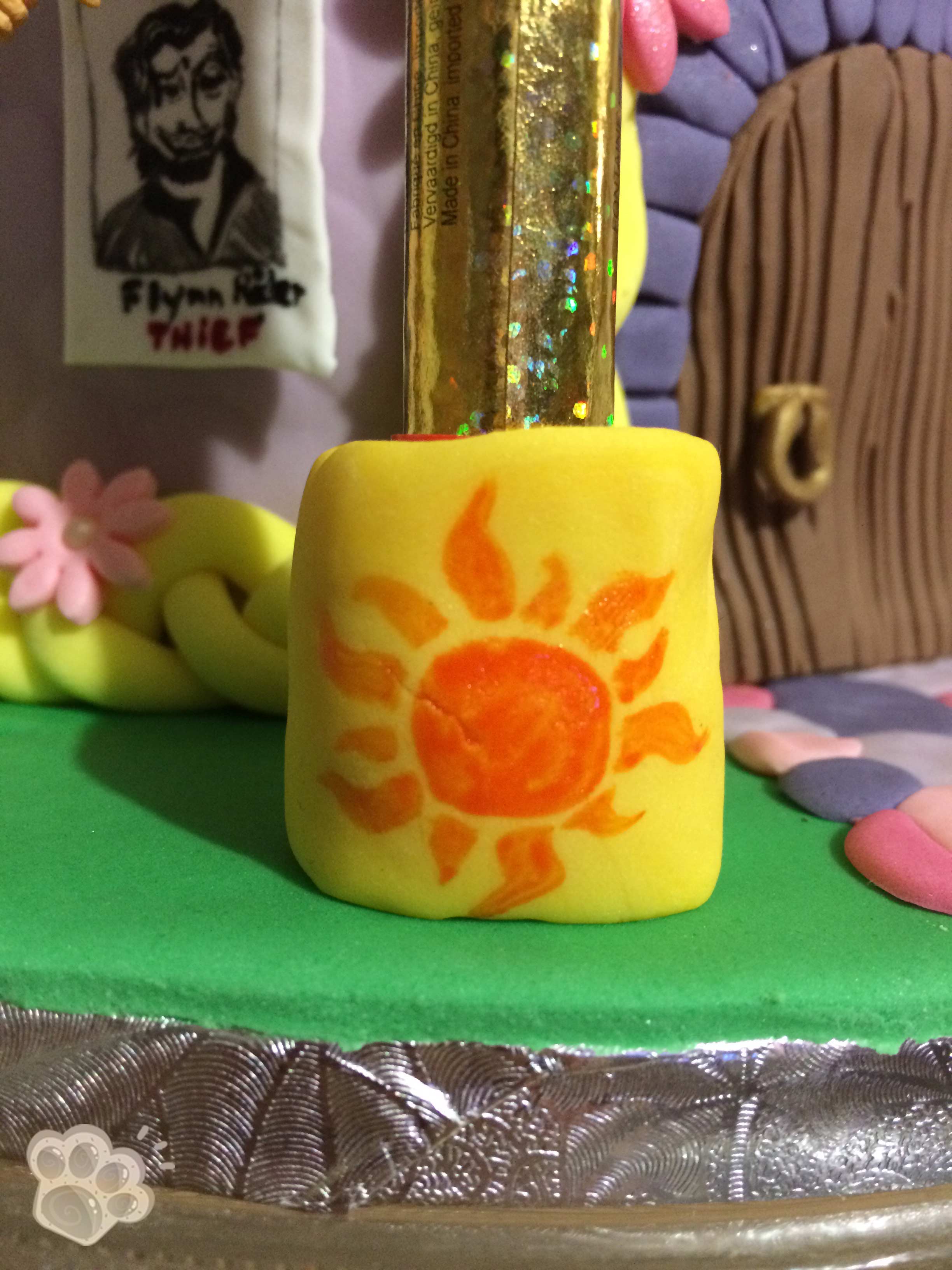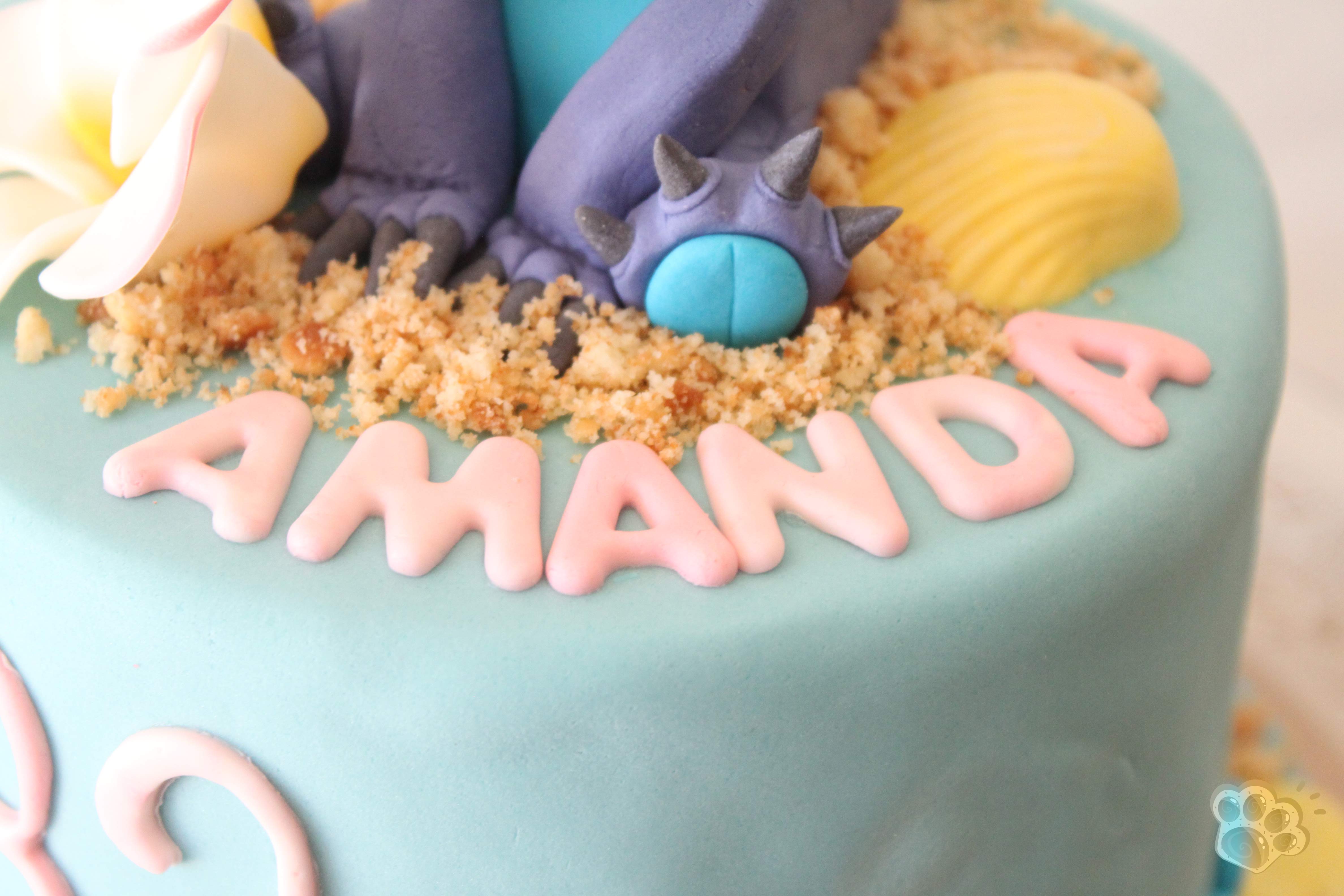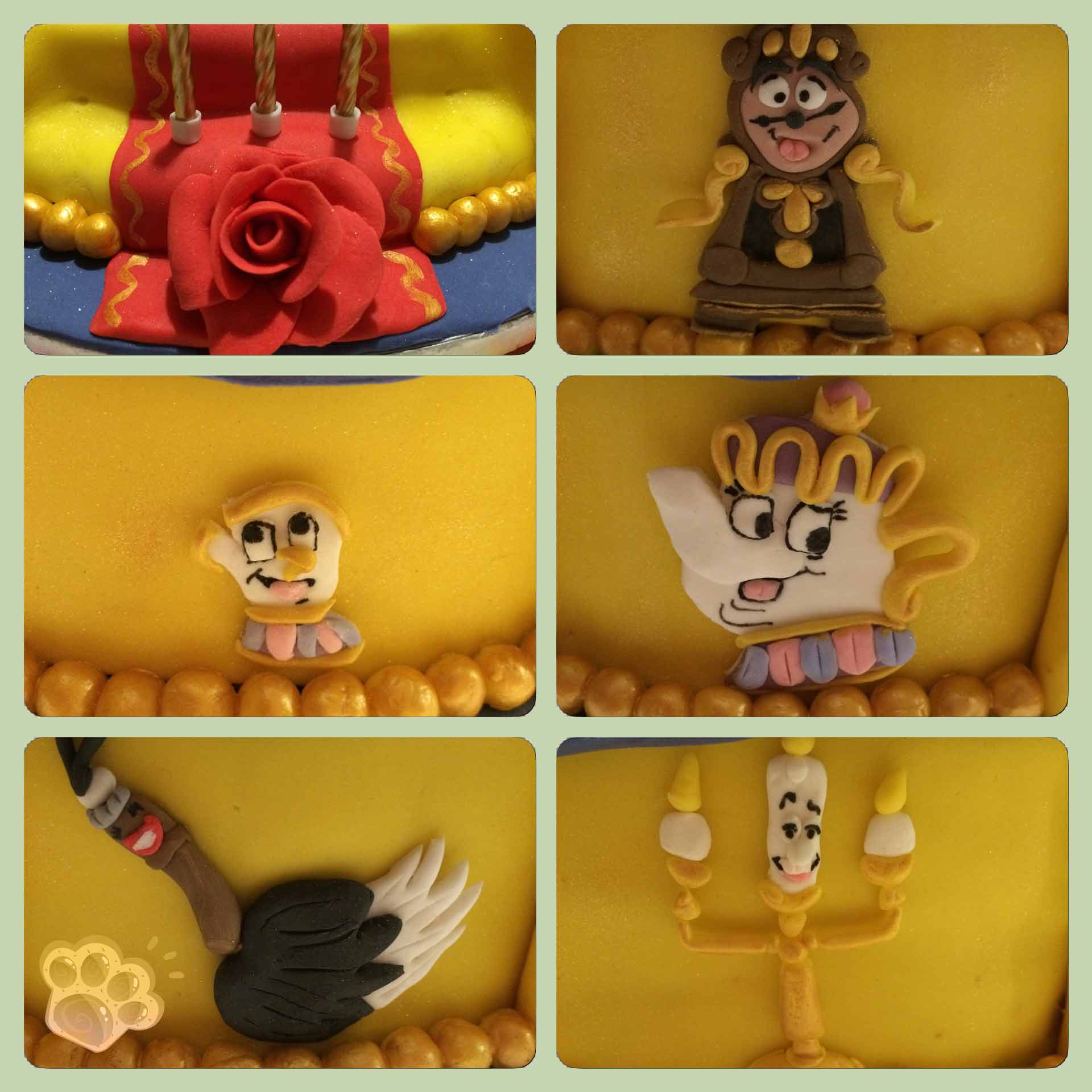 Et des plus complexes avec 2 épaisseurs de fleurs collées en décalé. J’ai ajouté ensuite des petits « poils » en faisant une mini bande de pâte à sucre et avec un ciseau à couture des crans.