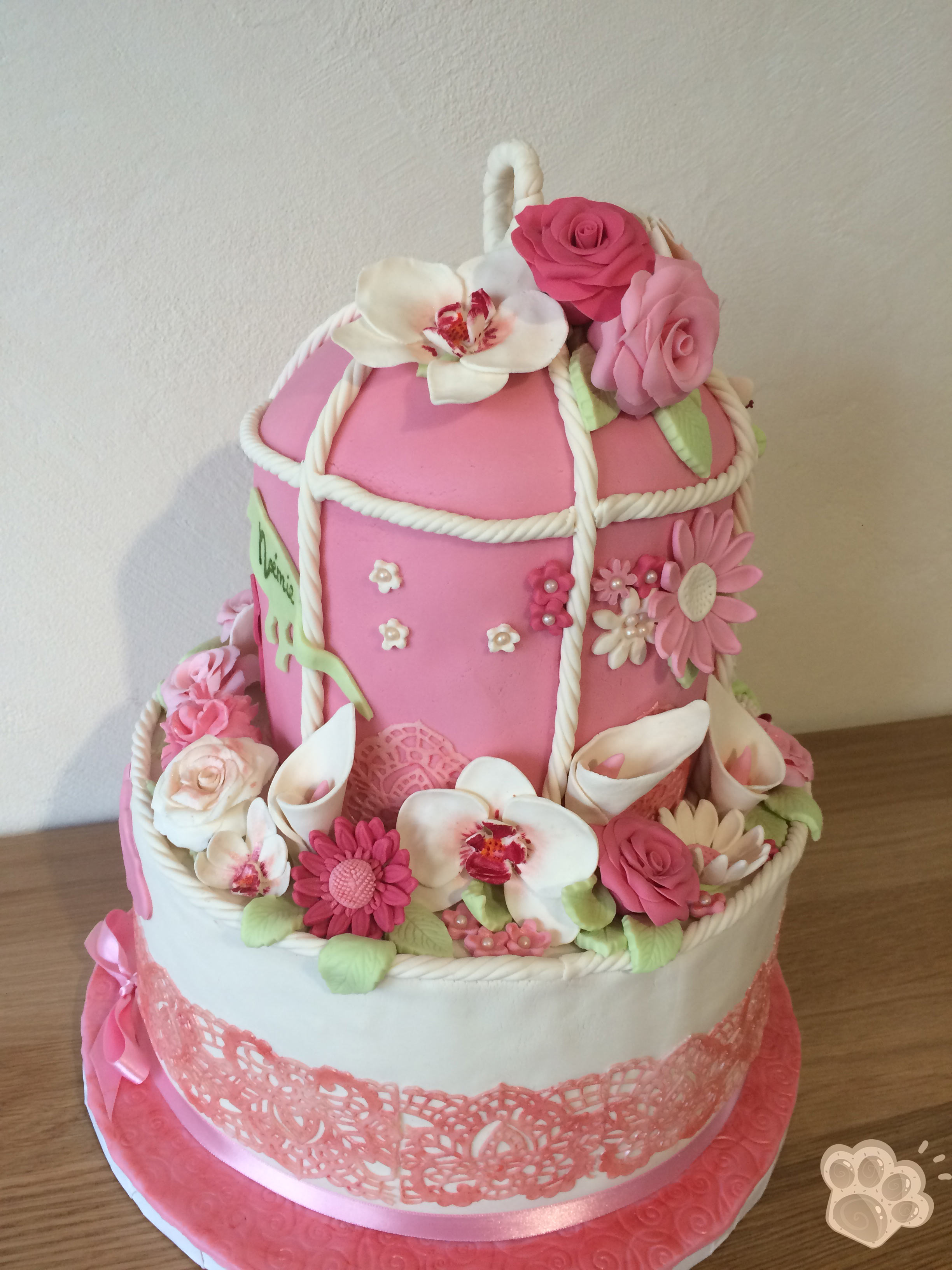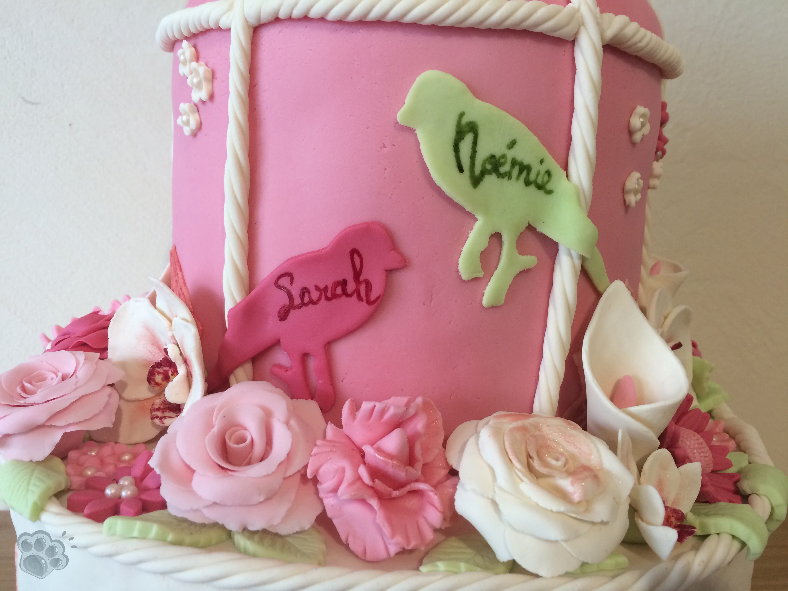 Retrouvez dans cet article tous les détails de fabrication d’un gâteau cage à oiseaux avec les tutos pour modeler des fleurs en pâte à sucre sans moule!