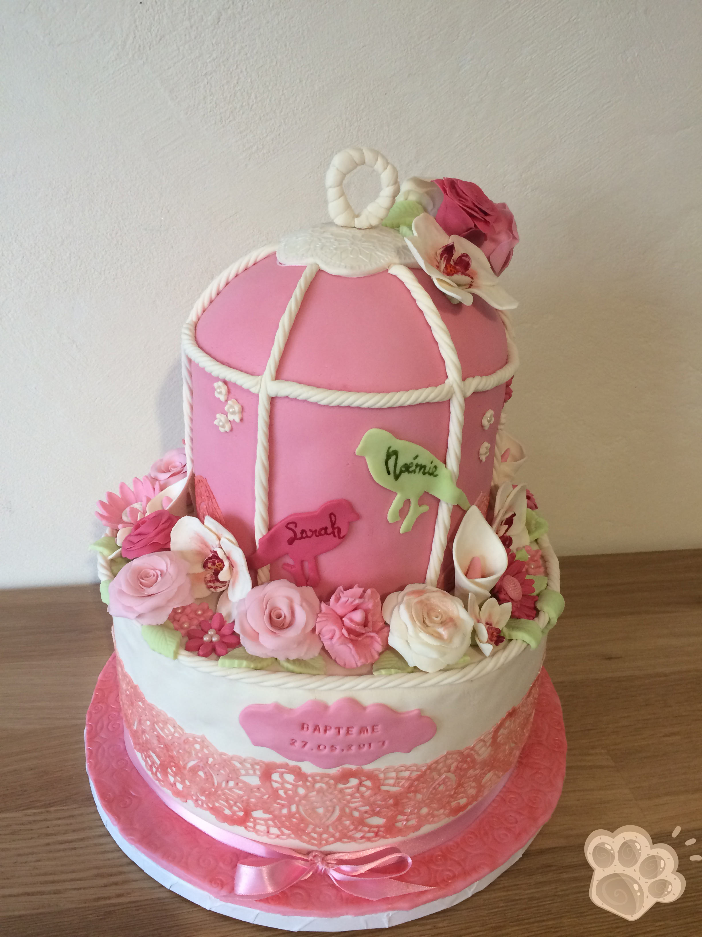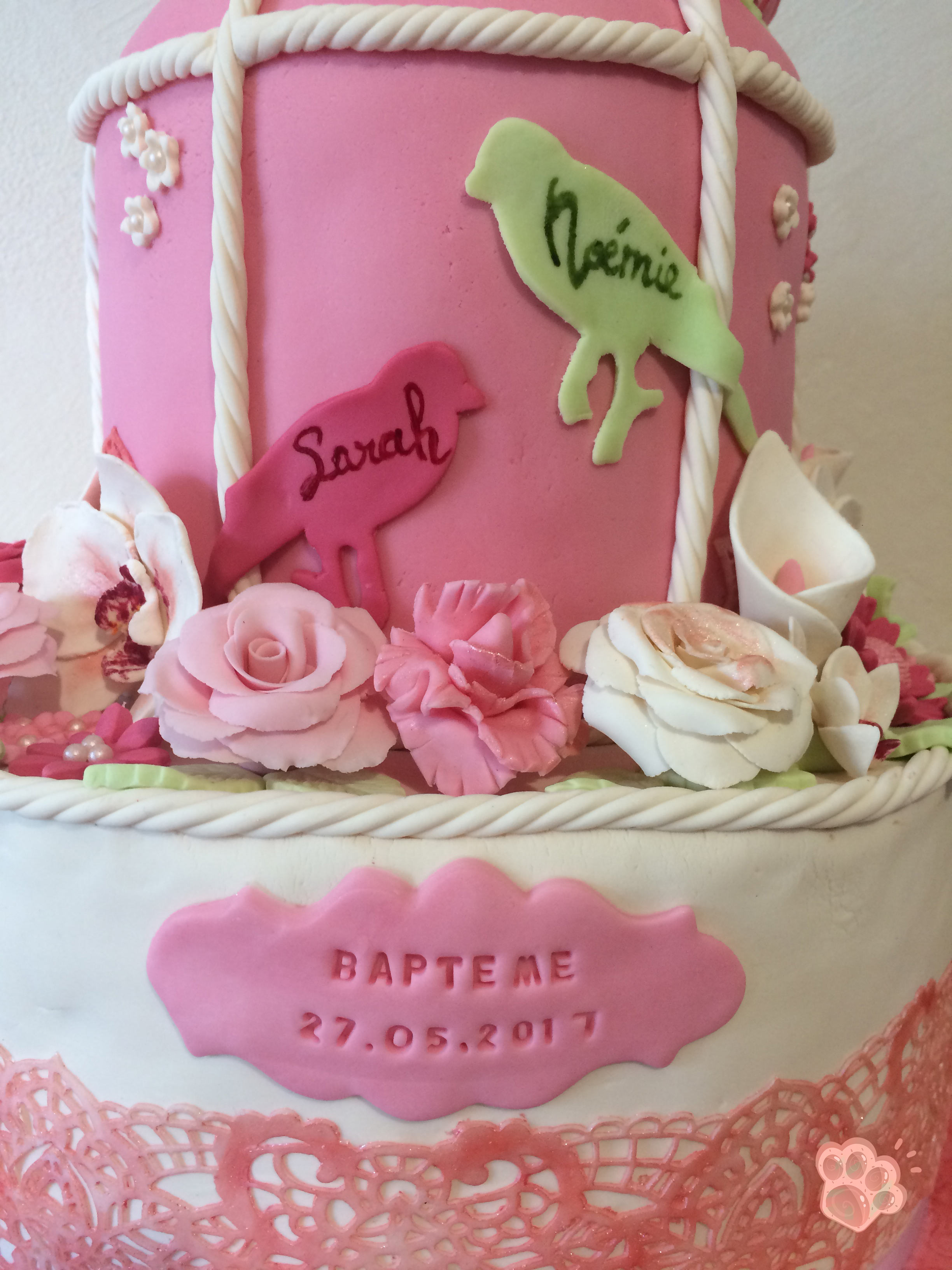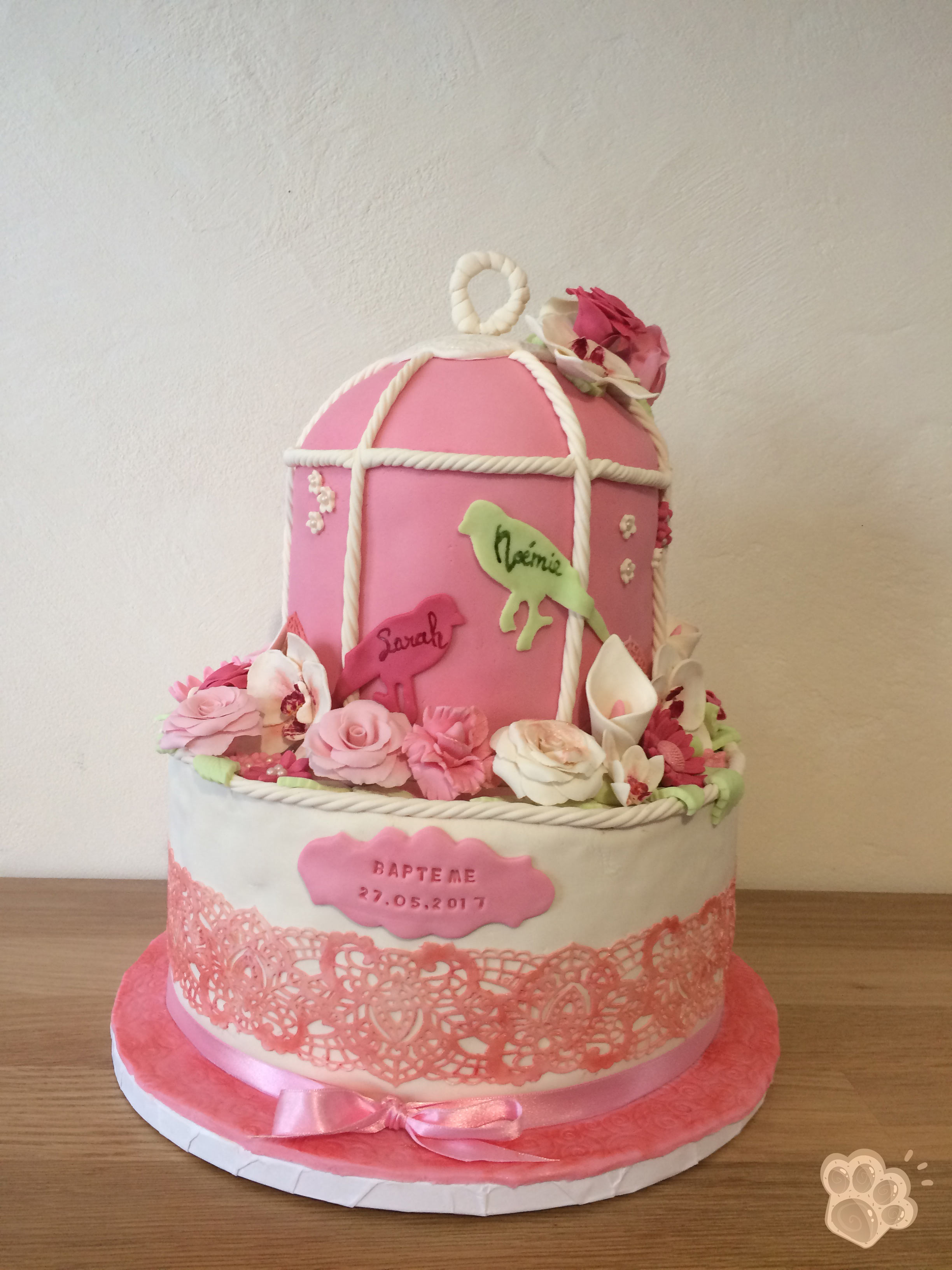 On part sur l’idée d’une cage à oiseaux avec les prénoms de ses 2 filles (double Baptême), beaucoup de fleurs de toutes sortes et de la dentelle car il faut le dire, 2017 : c’est l’année de la dentelle ! Dans les habits déjà (et ses 2 poupées auront de jolies robes roses pâles avec de la dentelle le jour J) mais aussi dans les accessoires et sur les gâteaux bien sûr! Une bonne excuse pour se lancer dans la dentelle en sucre ;).