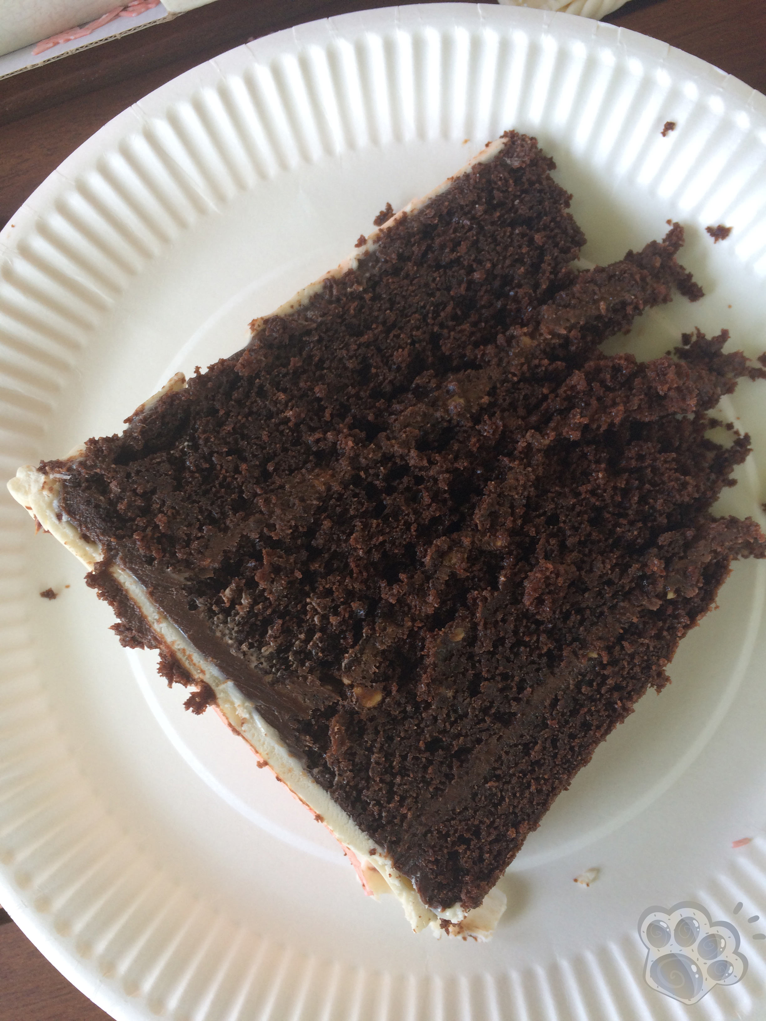 Le gâteau a voyagé une heure dans sa boîte transparente, bien calé dans la voiture et avec la climatisation à fond! Puis il a été entreposé dans une pièce fraîche jusqu’à l’heure du dessert où nous l’avons ramené sur le lieu du pique-nique.