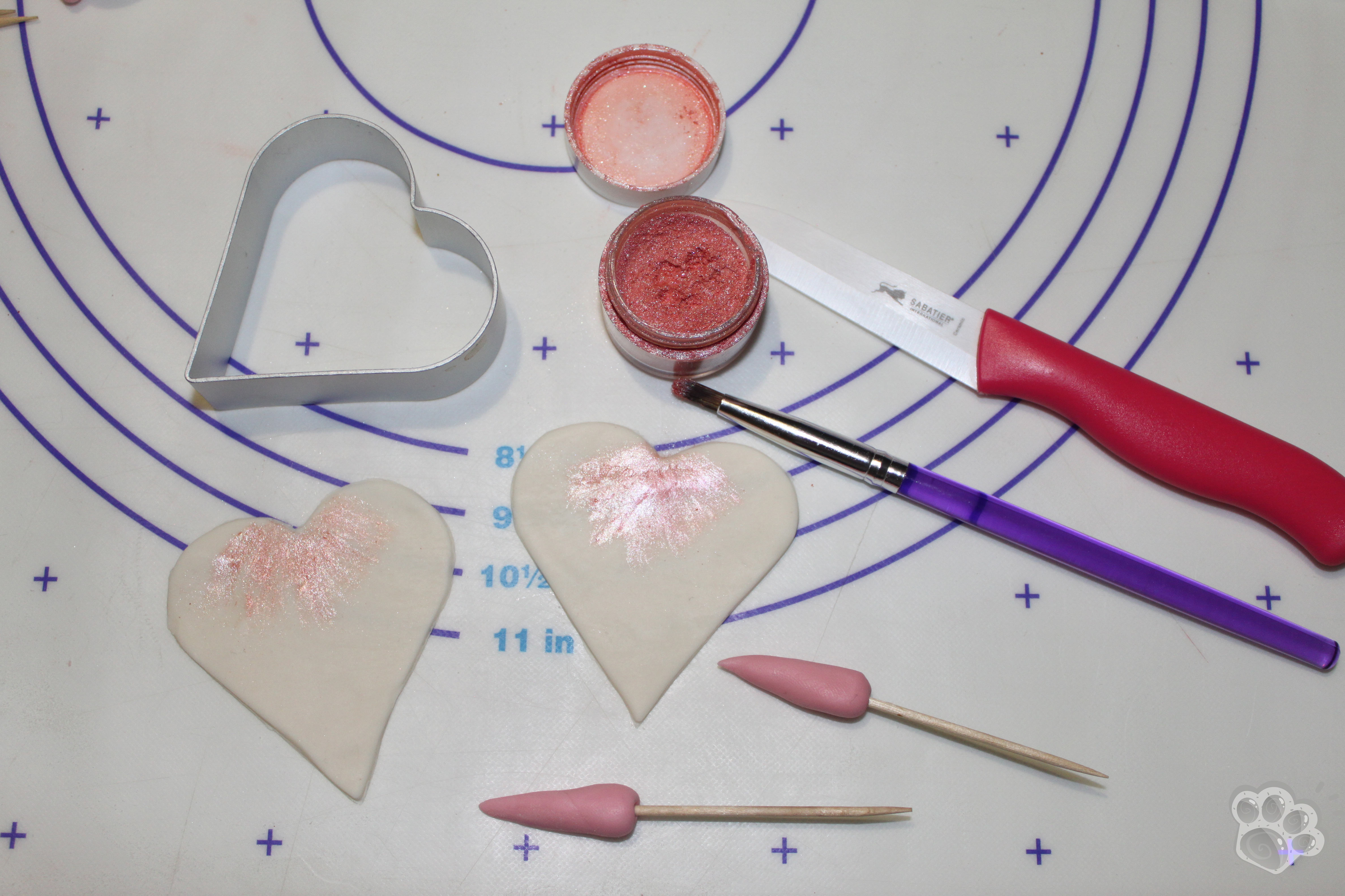 5-Mettre un peu de poudre rosé nacré à l’intérieur du cœur ivoire au pinceau