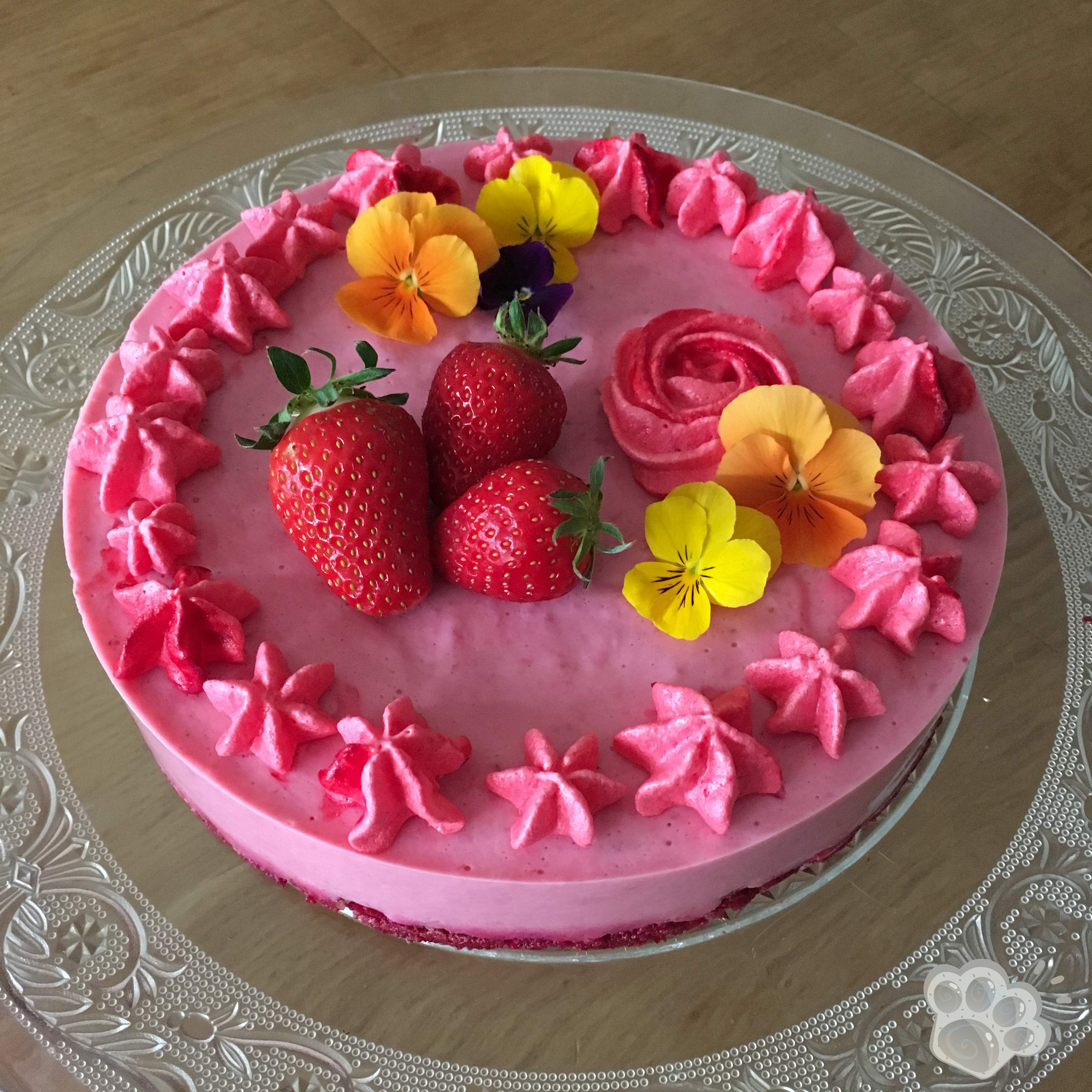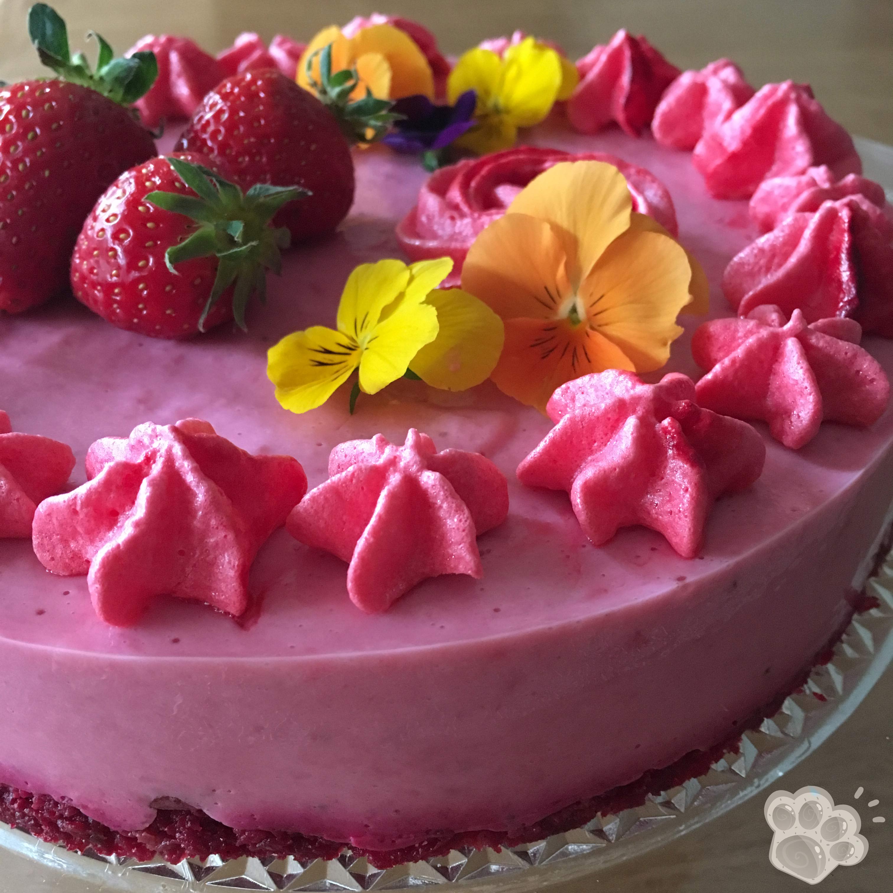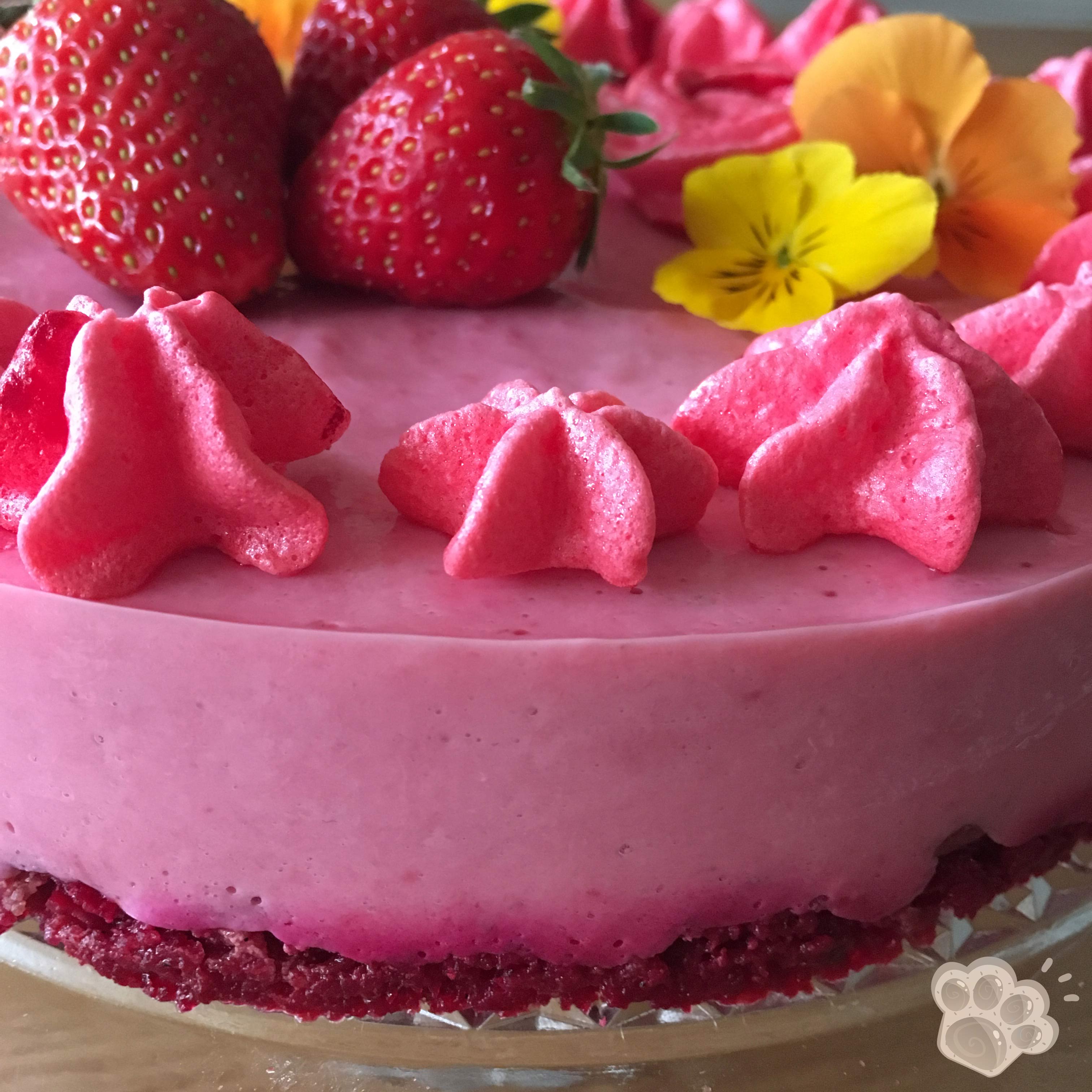 7-Décorer avec des fraises entières, des fleurs comestibles comme les pensées ici et des meringues allégées!