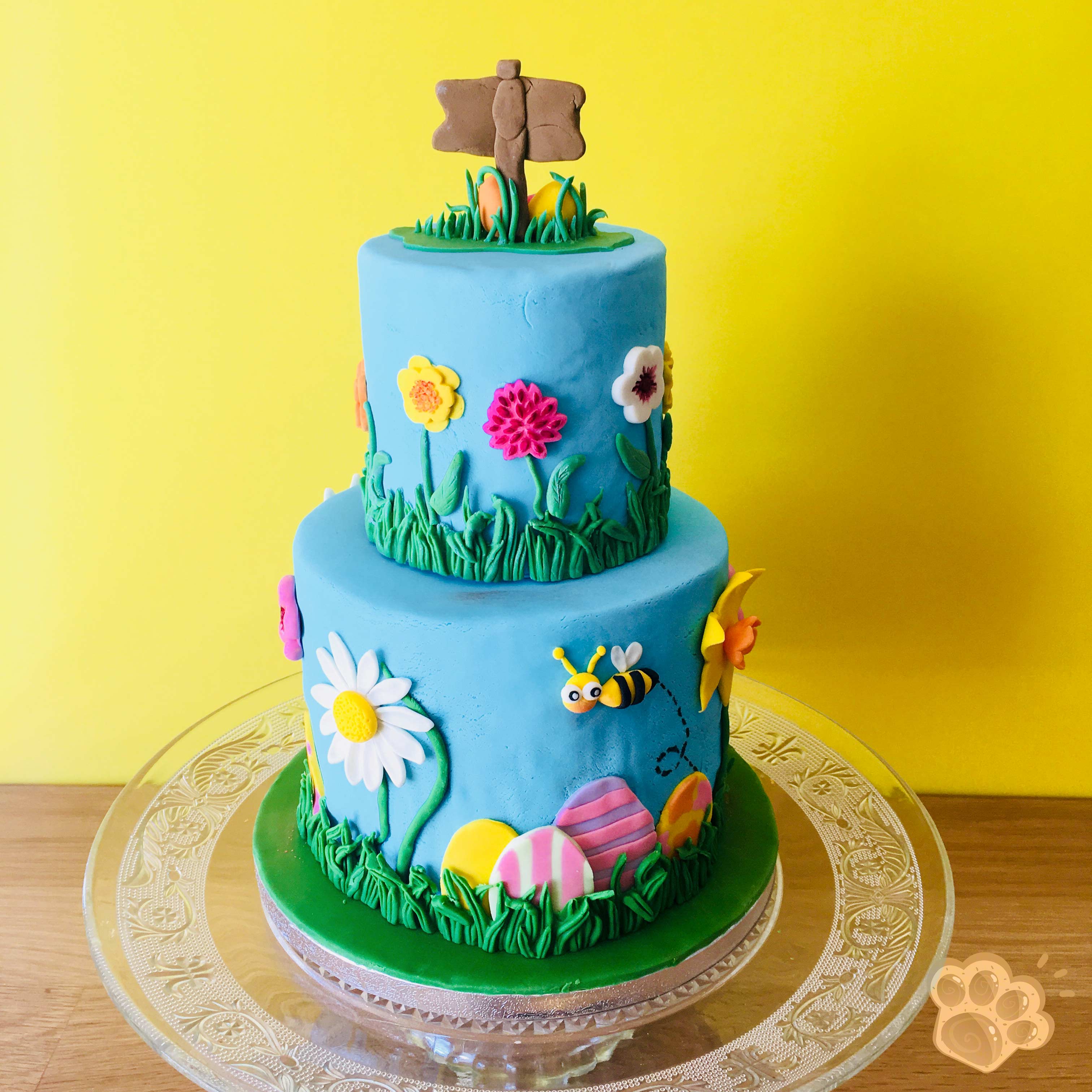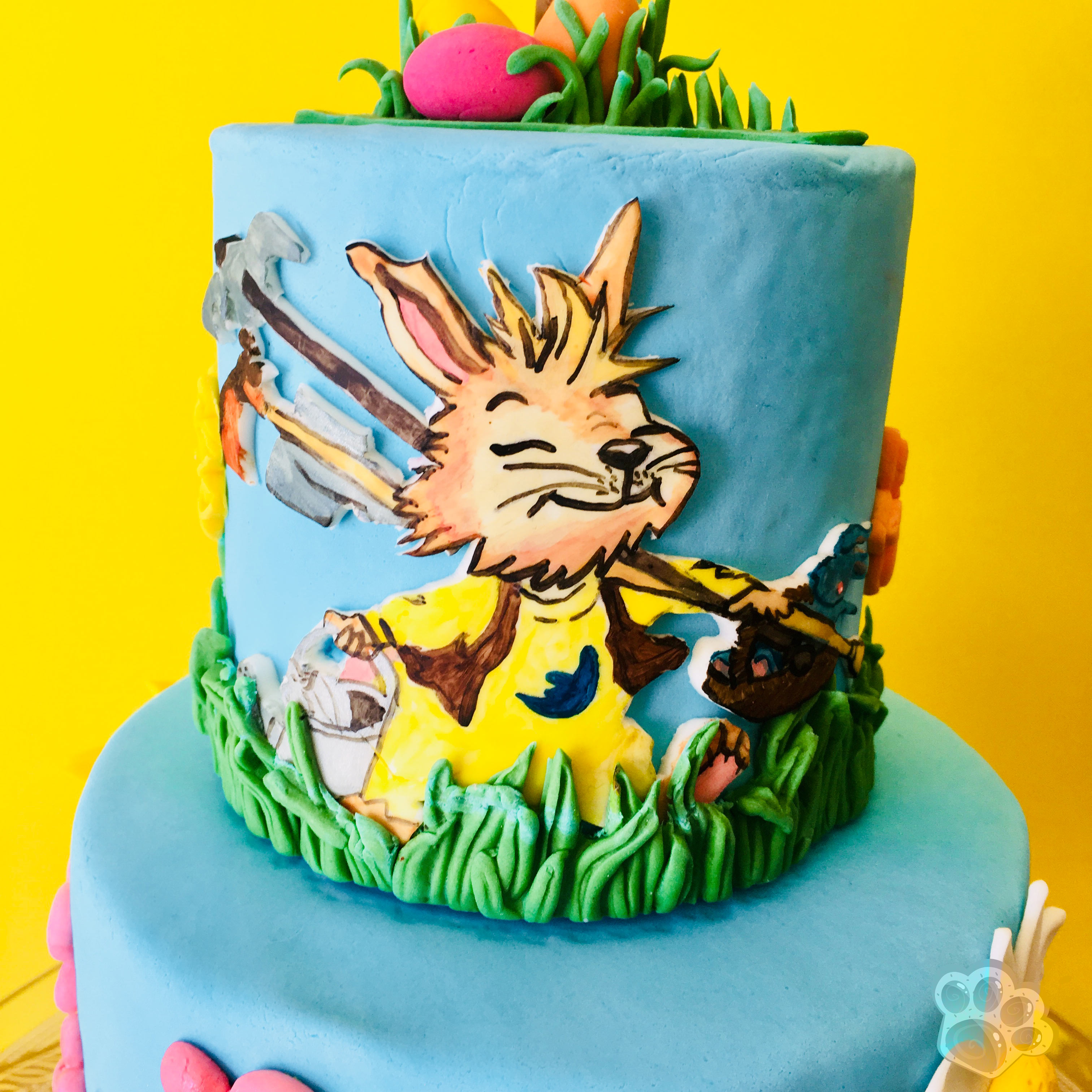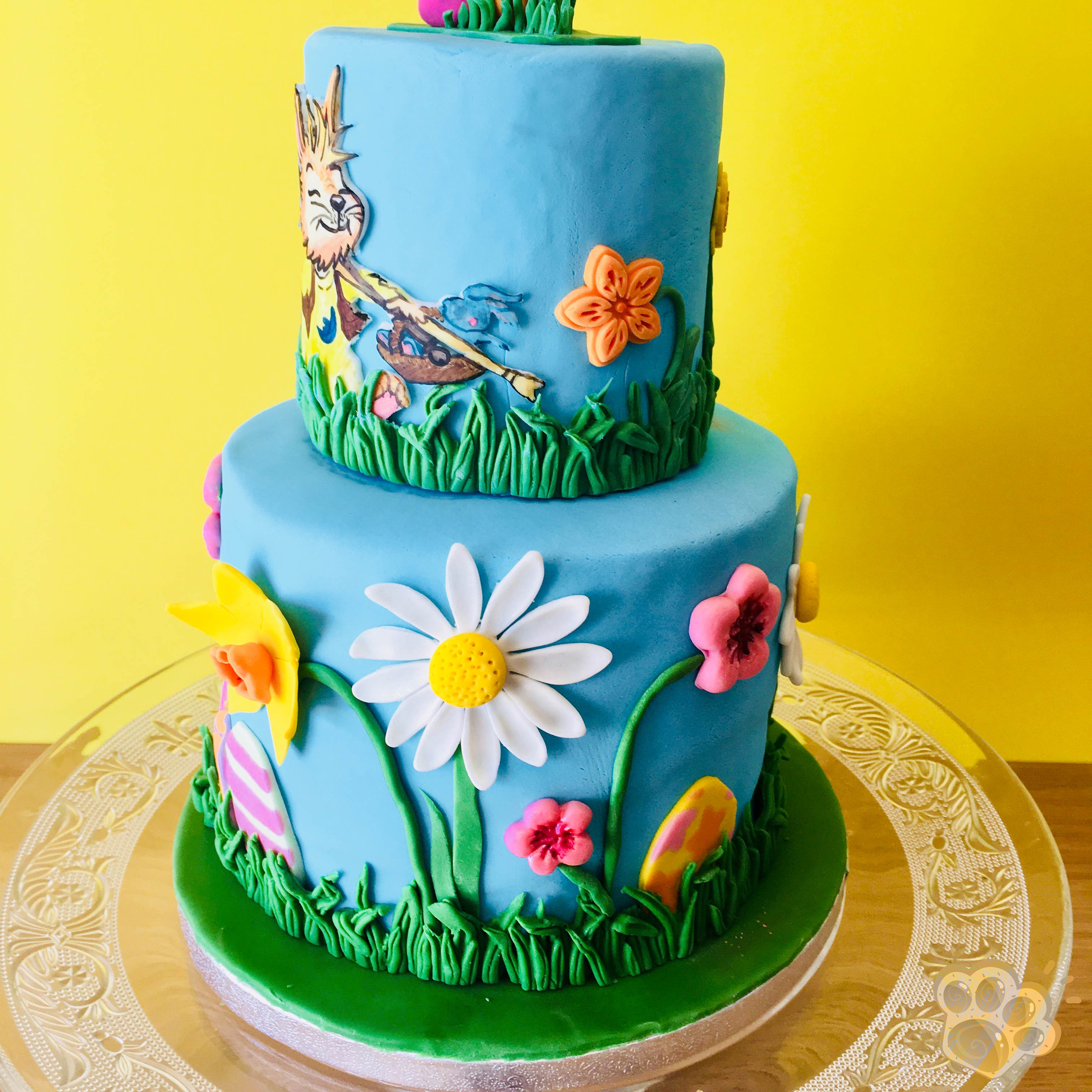 Comme nous étions seulement 9 pour le repas de Pâques à la maison et que j’avais en tête un cake design sur 2 étages, hop j’ai triché! Le haut du gâteau est un dummie (faux gâteau en polystyrène) de 10 cm de diamètre pour 10 cm de hauteur .
