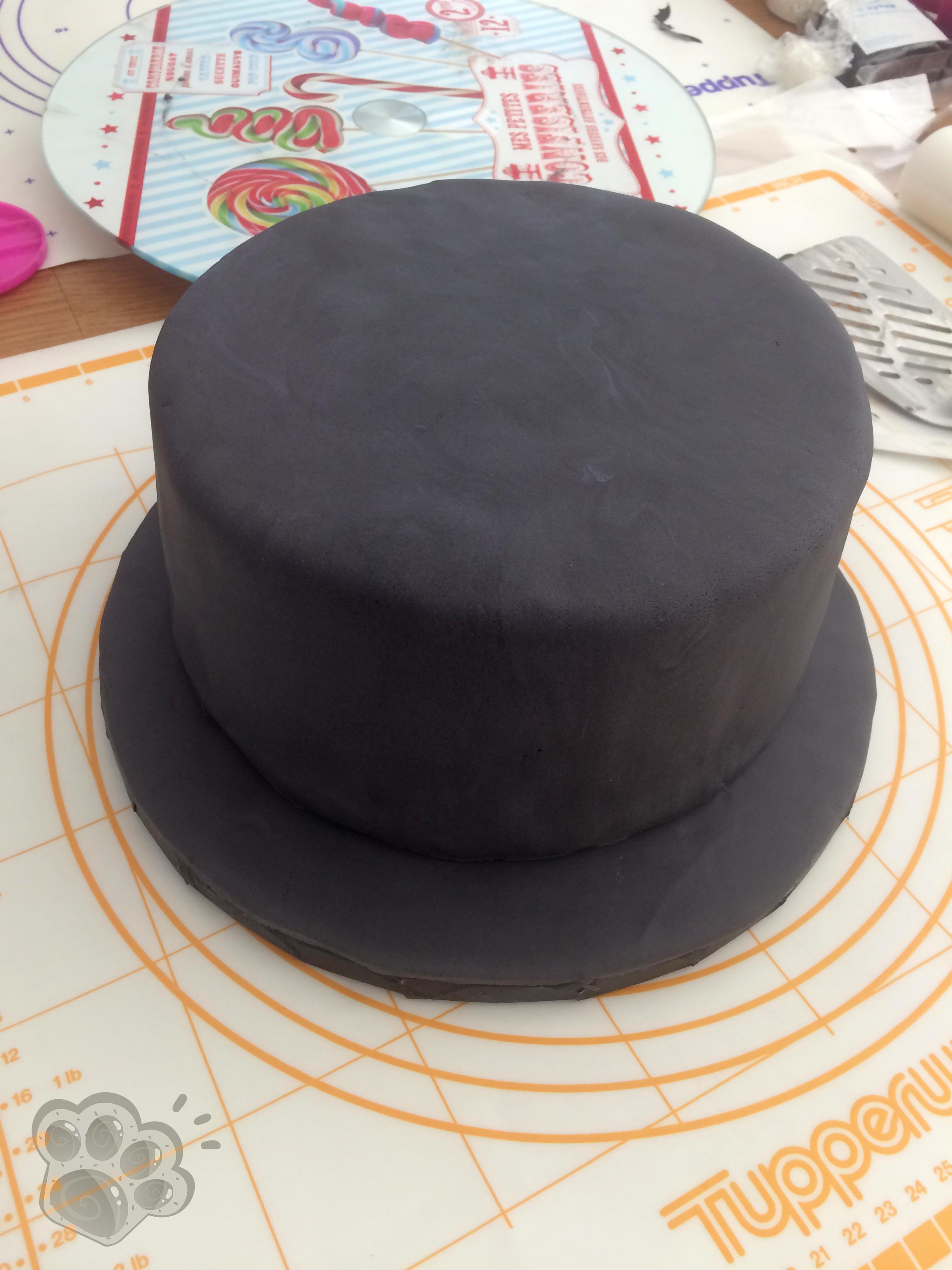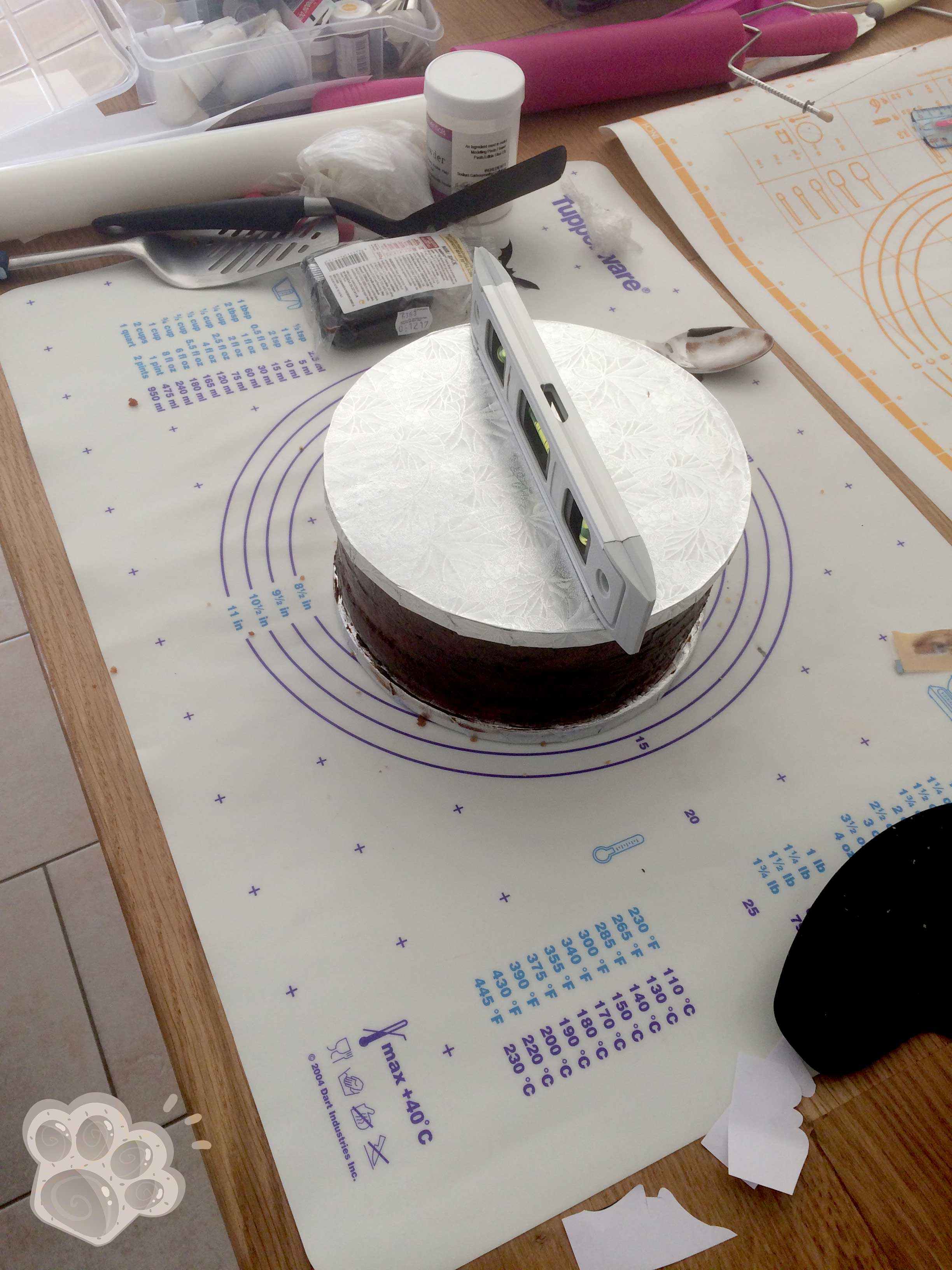 1-Recouvrir et lisser le gâteau de pâte à sucre marron clair (ma technique en détail ici)