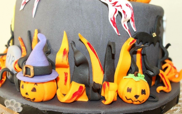 Sur l’arrière du gâteau j’ai collé un tronc d’arbre puis j’ai ajouté des feuilles de toutes les couleurs et enfin une chouette peinte, posée sur les branches :