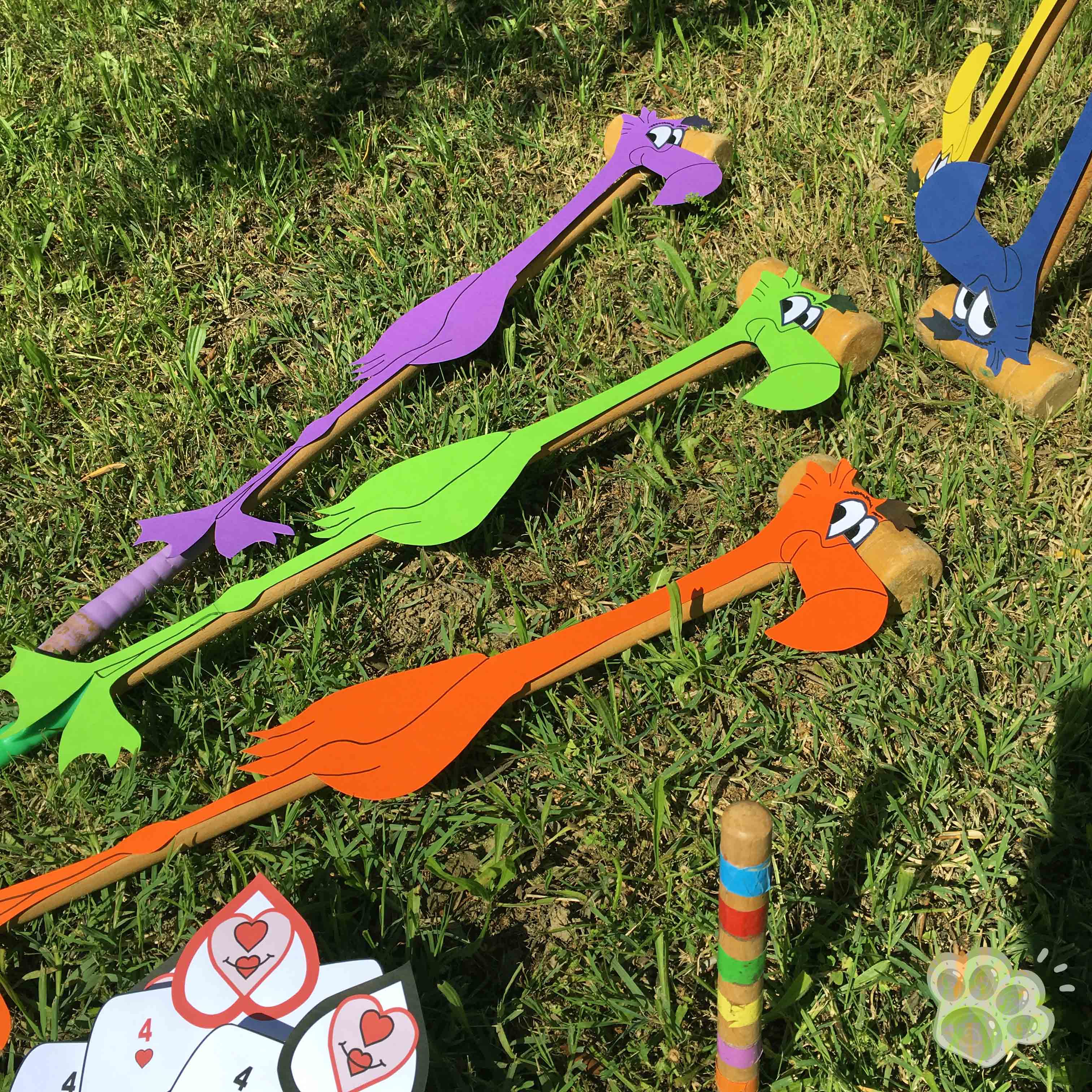 J’ai retrouvé chez ma grand-mère le jeu de croquet en bois de mon enfance ! Je vais donc le transformer en jeu de croquet d’Alice au pays des Merveilles 🙂